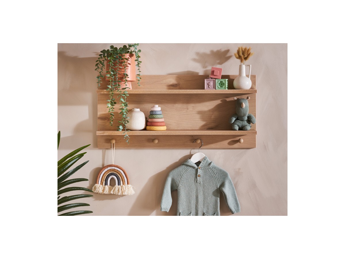 The Astrid shelf allows you to store precious belongings close to hand but safely out of reach from little fingers, offering you peace of mind and security. The two deep shelves are the perfect place for books and larger toys while the hanging rail underneath is ideal for storing those frequently used clothing items.