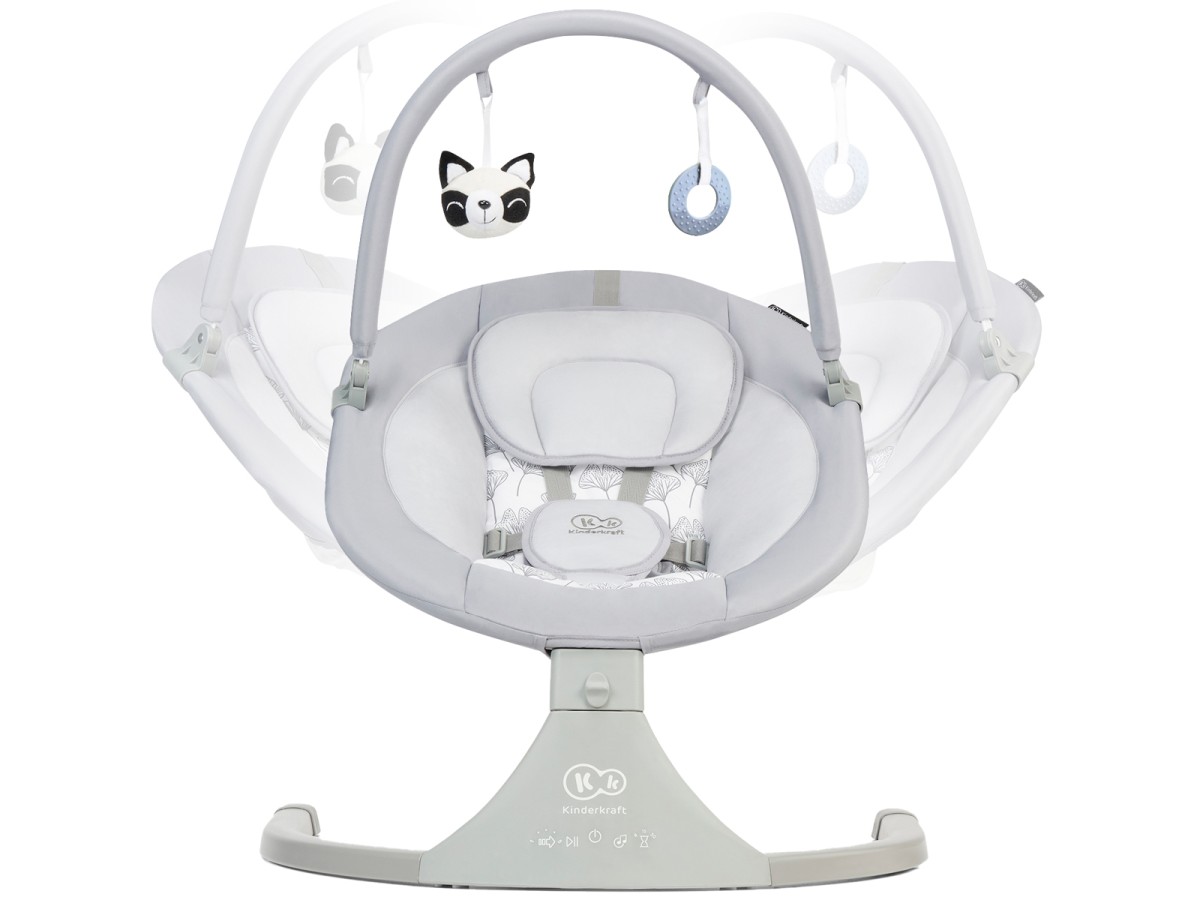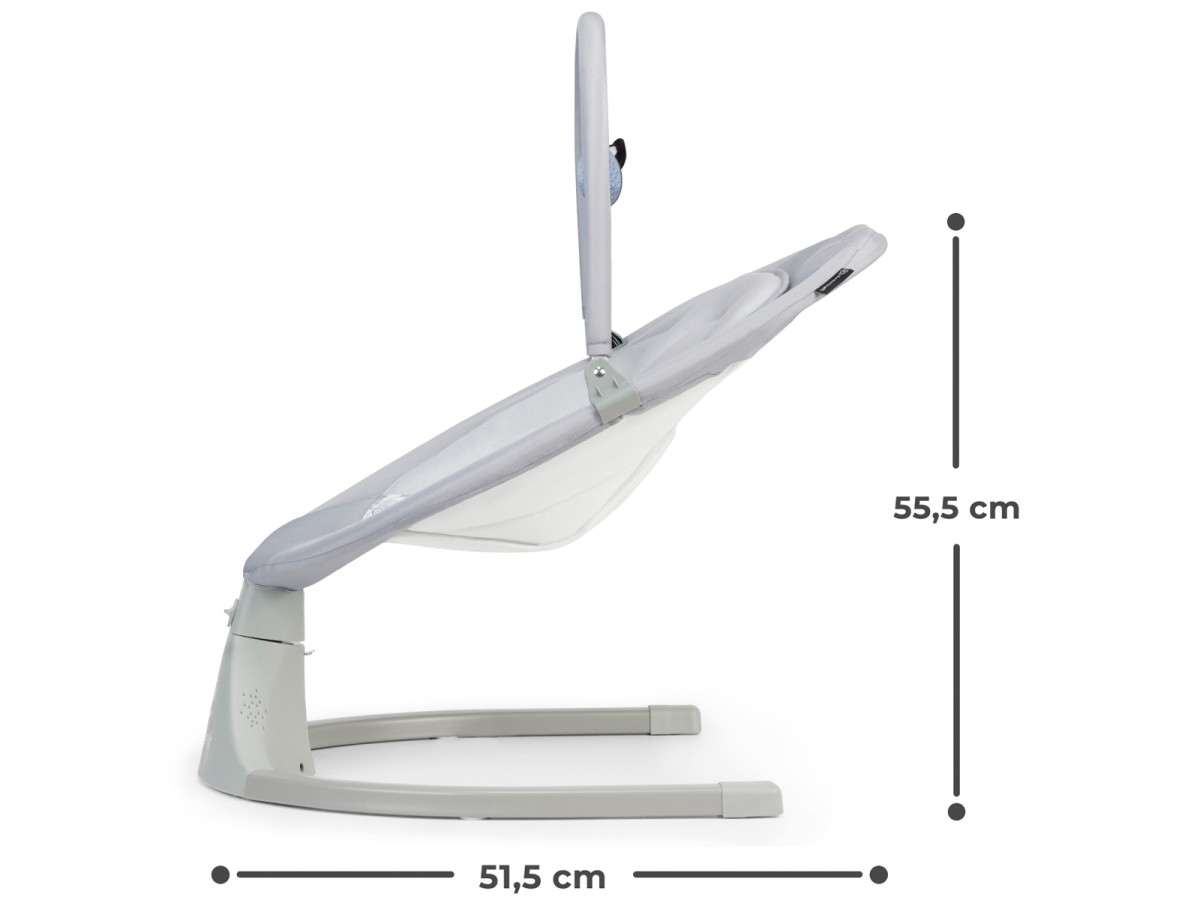 LULI is an electric bouncer-rocker that stands out from other products of its kind not only thanks to its beautiful, modern design, but also its pendulum rocking motion. LULI rocks your child like a pendulum instead of backwards and forwards – this motion reflects the natural motion of the child in the mother's belly, meaning it's familiar and pleasant for your child. The rocker features modern technology that enables simple and quick operation using the panel. This bouncer makes settling your child or rocking them to sleep even easier. LULI has five rocking speed options and a timer that you can set to 8, 15 and 30 minutes (if the timer is turned off, the rocker works the entire time). In addition, the control panel gives you a choice of 12 pleasant melodies. Your child is kept safe thanks to the five-point safety harness that can be adjusted (two heights). The rocker is made of soft materials that are pleasant to the touch and provide your child with comfort and convenience– the set includes a soft, adjustable cushion. The bouncer comes with a removable bar and two toys.
