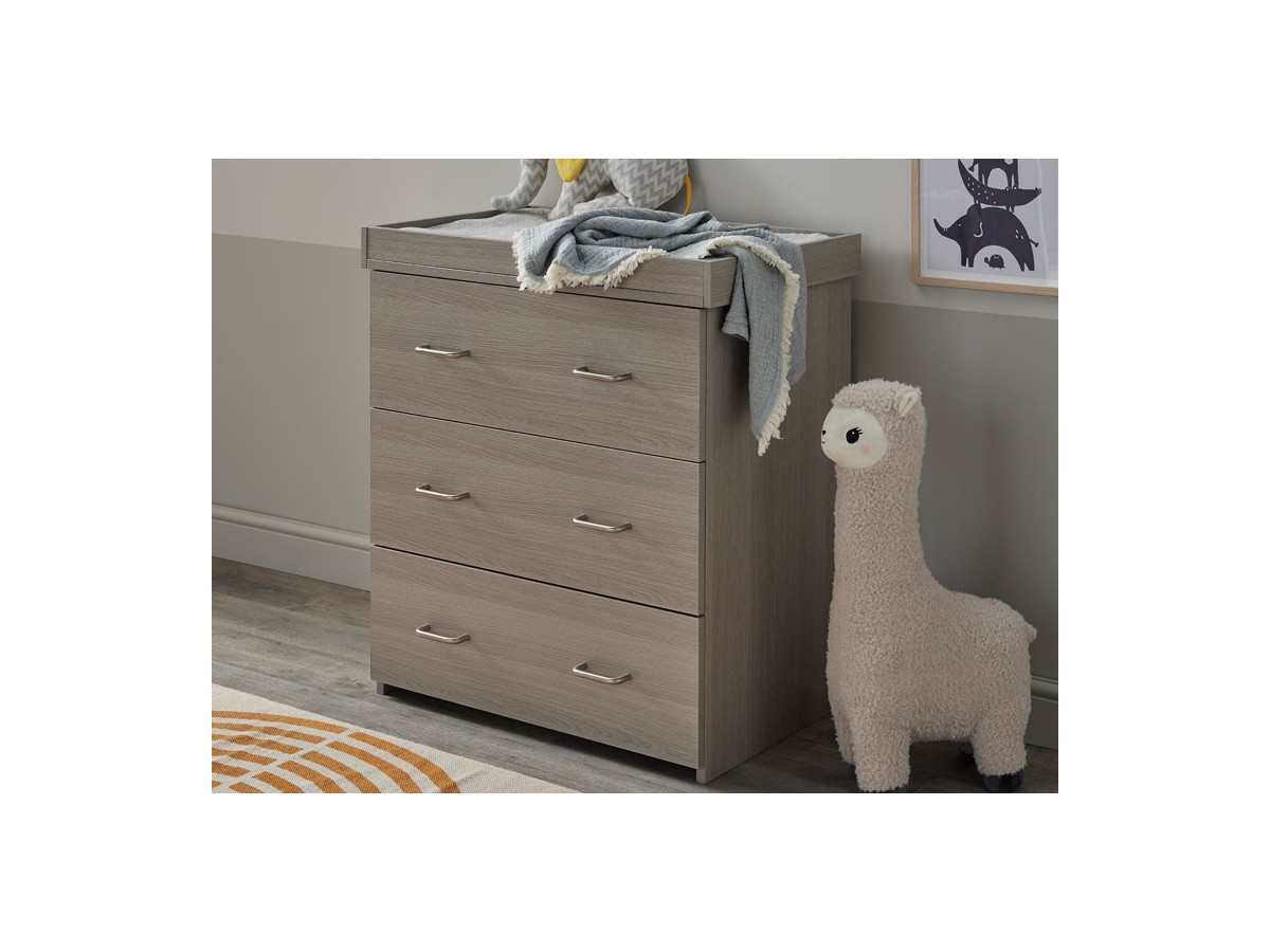 The Caro collection is the ideal starting point for your nursery decor thanks to its timeless style and woodgrain finish. The changer on the Caro Chest of Drawers can be taken off, so once your baby is about 12 months old, you can turn it into a more traditional chest of drawers. There are three full-sized drawers, giving you plenty of space to store all your little one’s clothes.