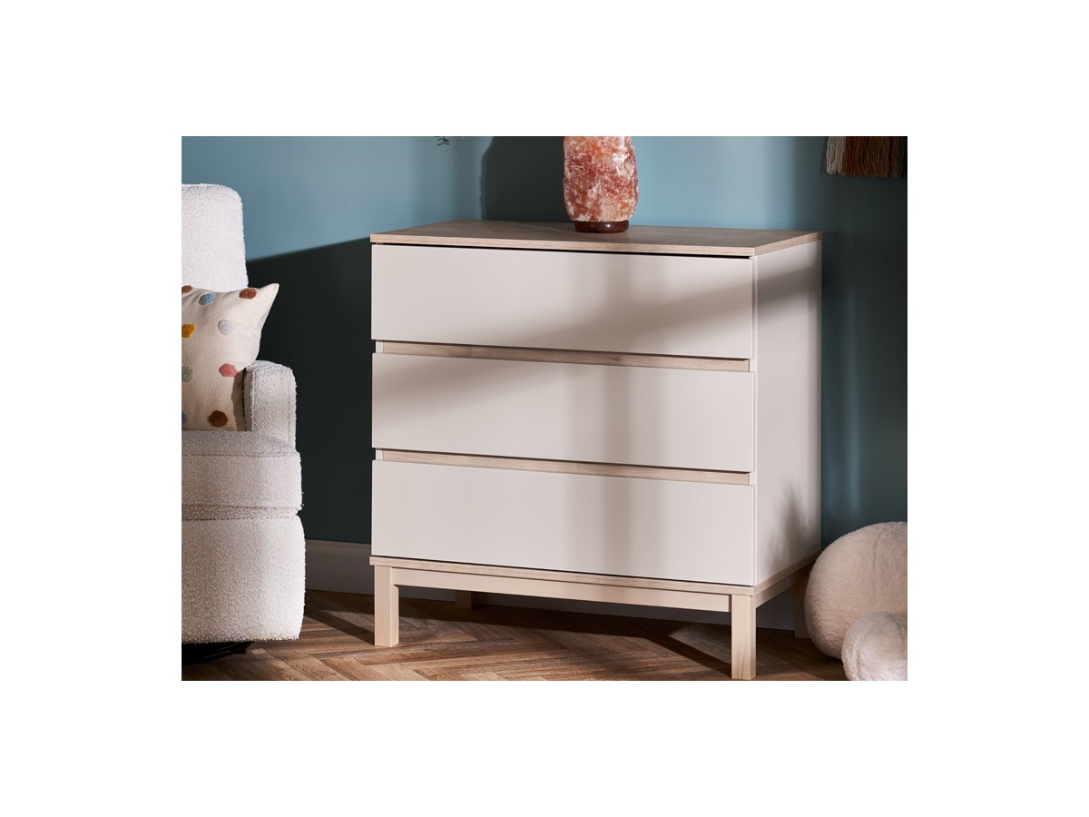 With its clean lines and two-tone colourway, the Astrid is not just a changing unit. The three large drawers fronted by a chic no-handle design provide plenty of storage. While the clever positioning of the changing top means you are stood face on to baby, allowing plenty of precious one to one time. Once you no longer need to use the changer, the removeable top ensures you have a stylish chest of drawers that will complement any room of the house for years to come.