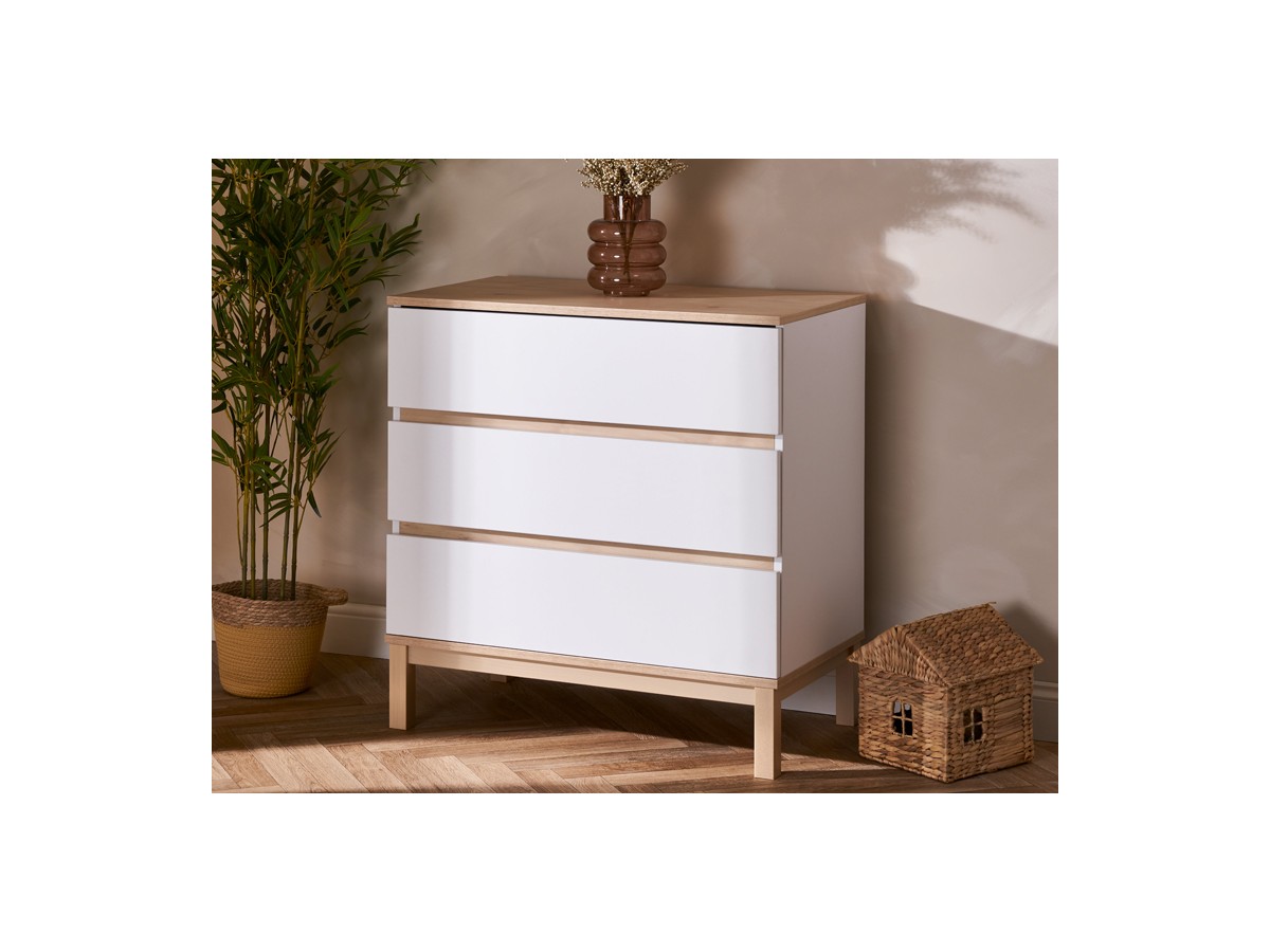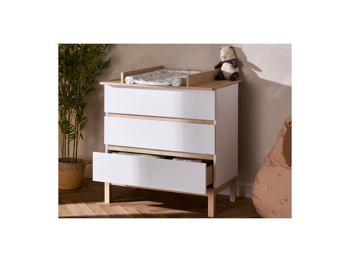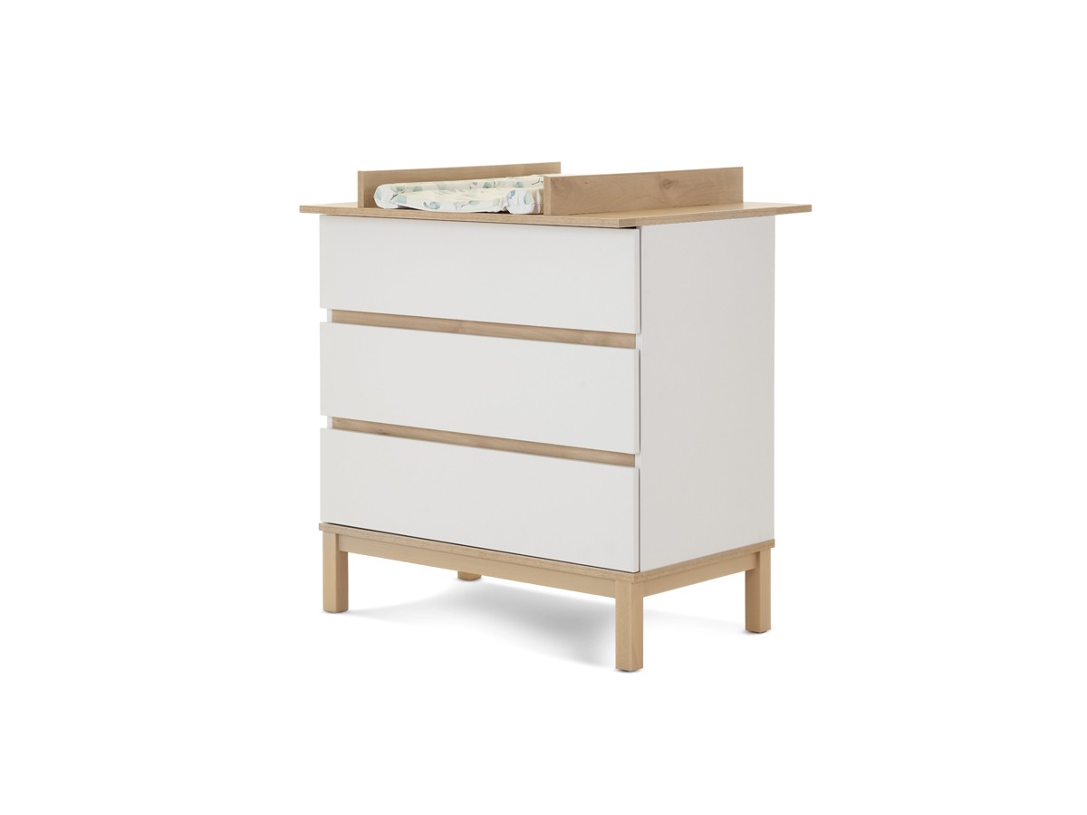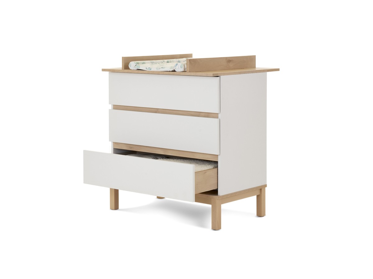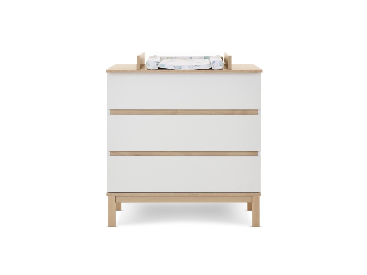 With its clean lines and two-tone colourway, the Astrid is not just a changing unit. The three large drawers fronted by a chic no-handle design provide plenty of storage. While the clever positioning of the changing top means you are stood face on to baby, allowing plenty of precious one to one time. Once you no longer need to use the changer, the removeable top ensures you have a stylish chest of drawers that will complement any room of the house for years to come.