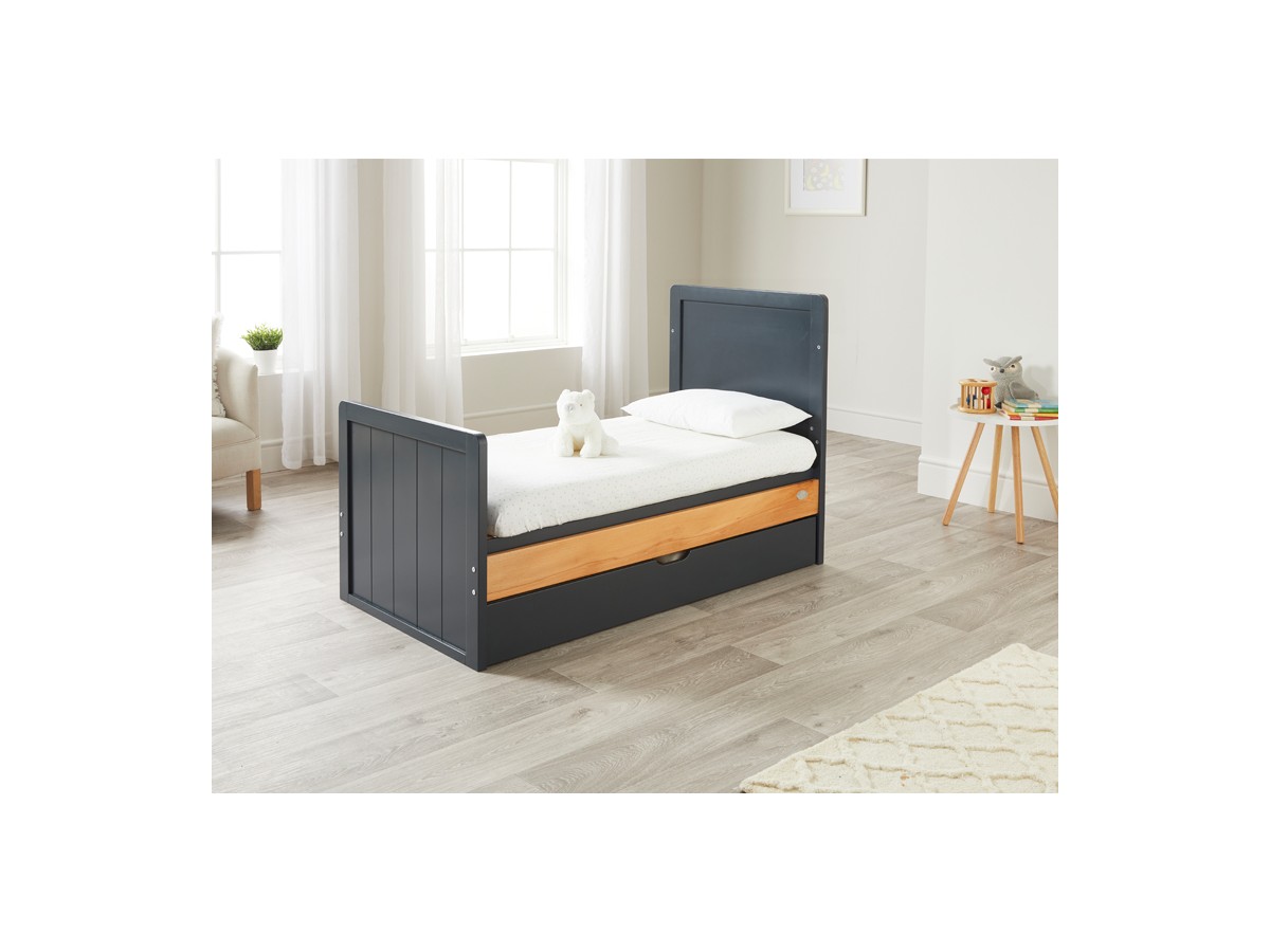 The ABI cot bed can be easily converted into a toddler be prolonging the usage of the bed. The front and back rails can be removed the foot end can be shortened where the headboard will remain in its original shape allowing the toddler bed to look like just a normal bed.
