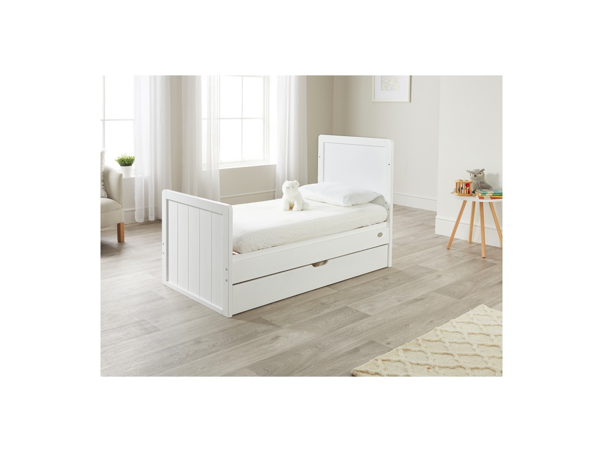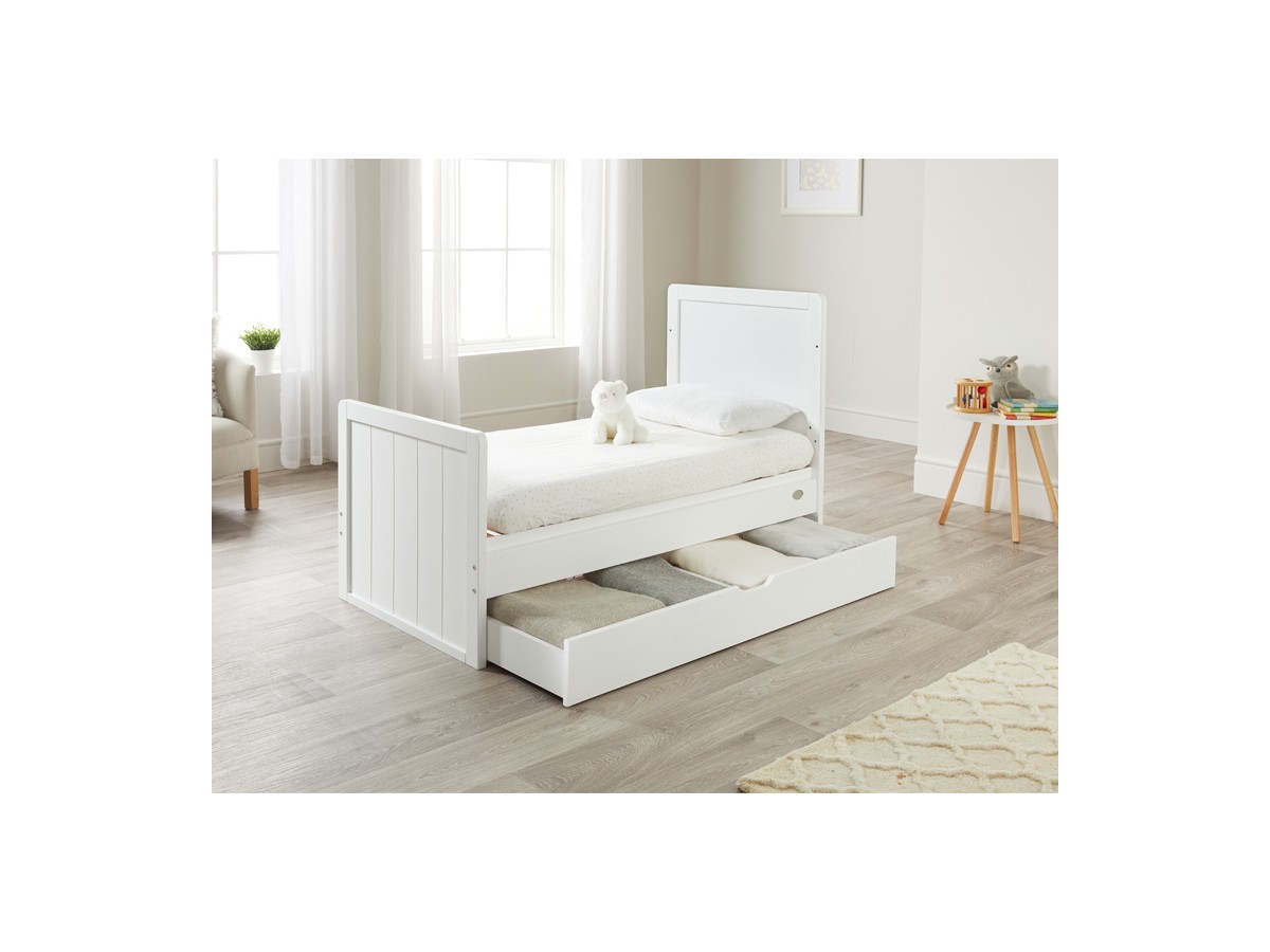 The ABI cot bed can be easily converted into a toddler be prolonging the usage of the bed. The front and back rails can be removed the foot end can be shortened where the headboard will remain in its original shape allowing the toddler bed to look like just a normal bed.