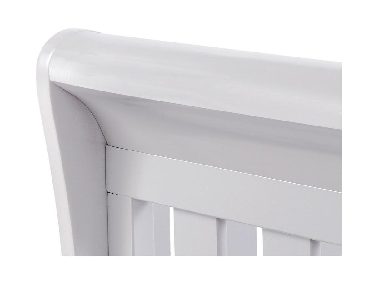 The Eva Sleigh’s striking arched top and classic white finish are undeniably eye-catching. You may make a bold design statement in your baby’s room thanks to the sleigh’s beautiful curves.