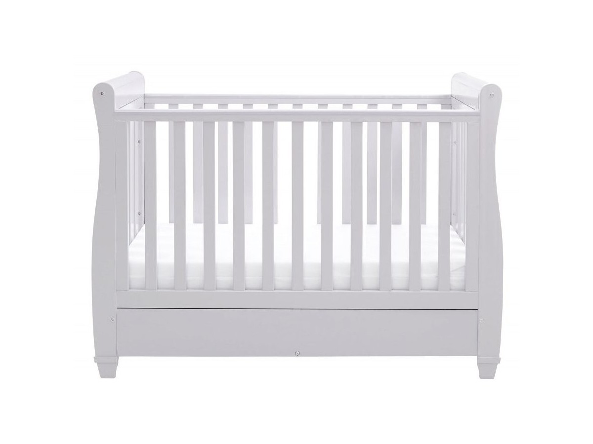 Three different mattress heights are available on the Eva Sleigh Cot Bed, making it the perfect sleeping environment for your growing baby. The Eva can be quickly transformed from a cot into a beautiful toddler bed once your little one is ready to graduate from the cot. But the Eva Sleigh’s usefulness doesn’t end when the baby reaches toddlerhood, as it can be turned into a sofa, which is great for parents to cuddle with their kids while reading them bedtime stories.