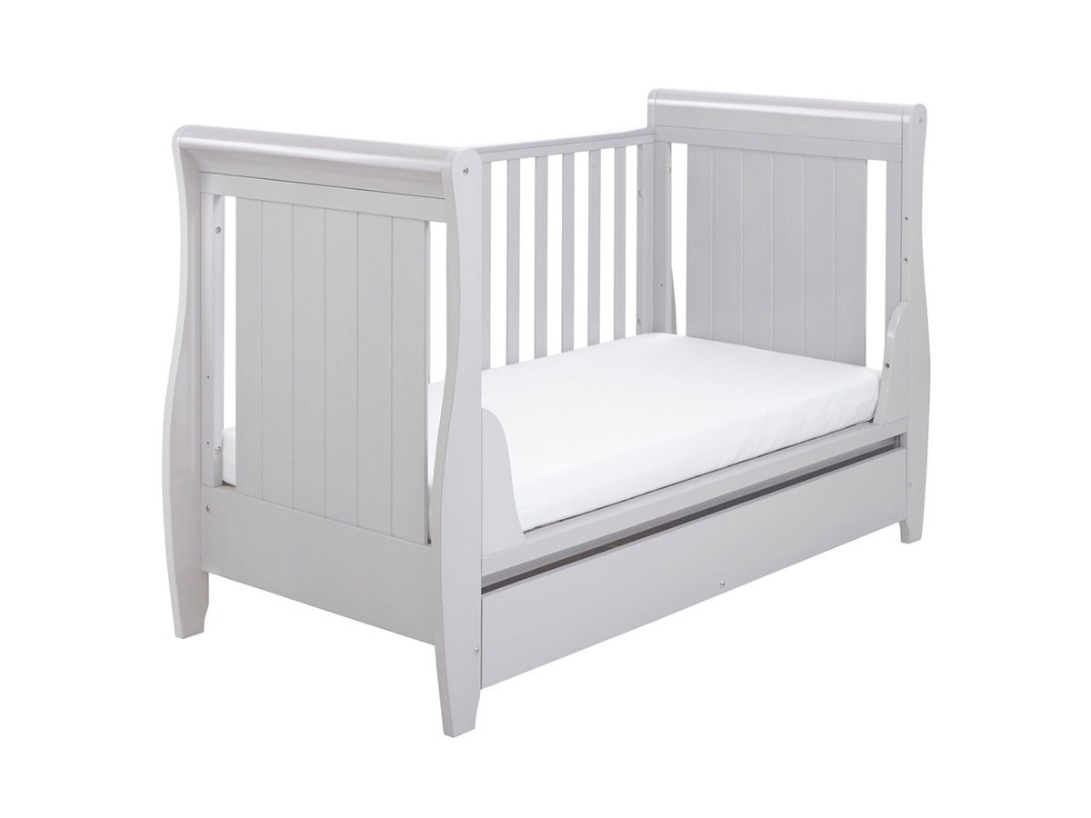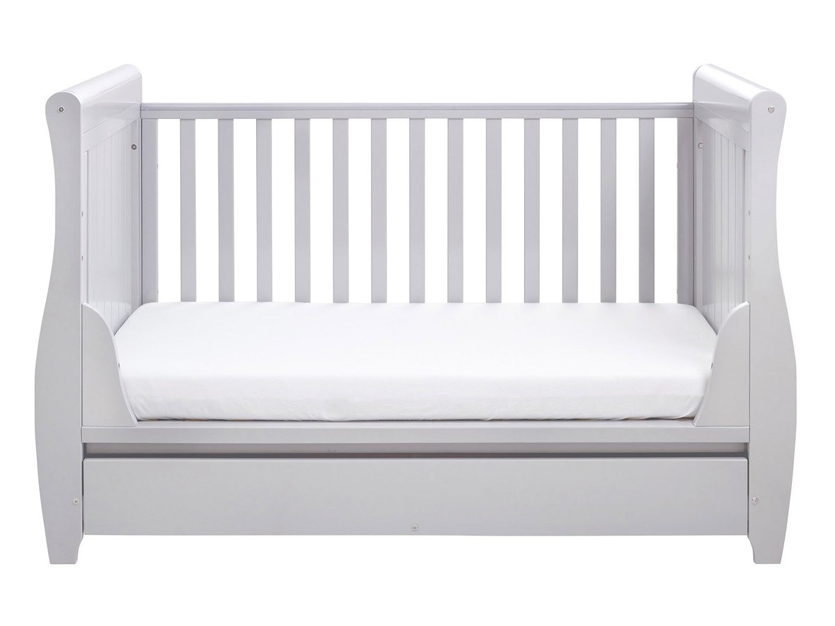 Babymore Stella Sleigh Drop Side Cot Bed – Grey