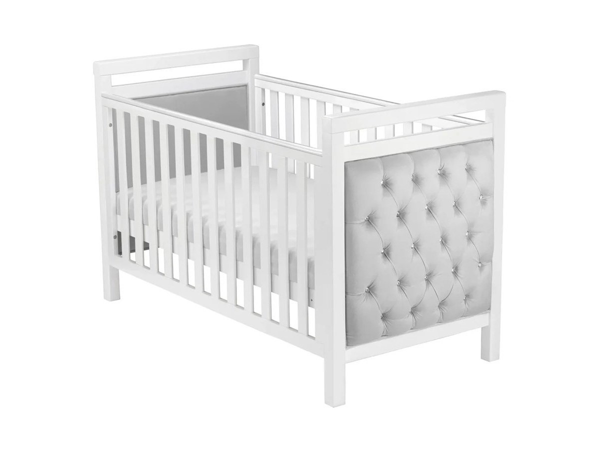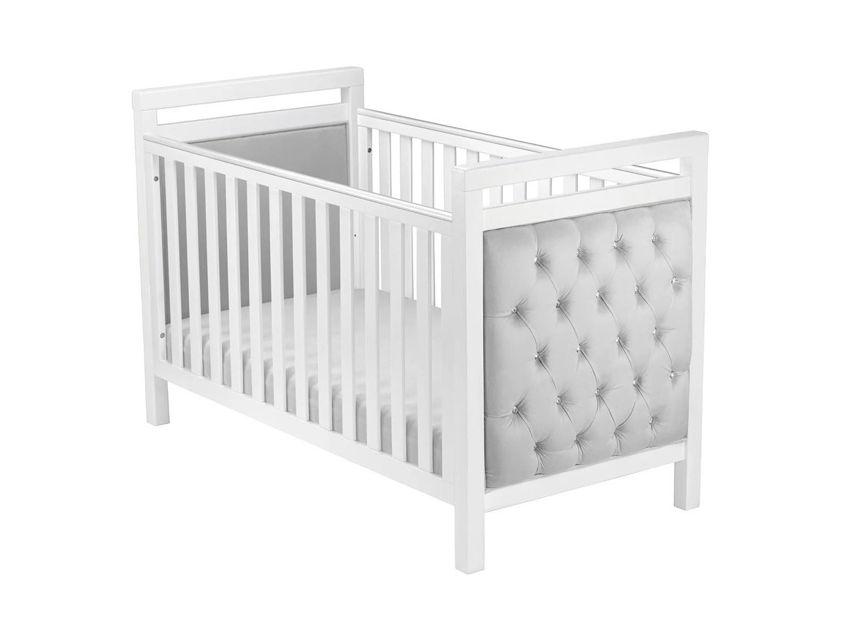 The Velvet Deluxe cot bed to toddler bed is all about both cosiness and comfort for your baby. The headboard and footboard are deeply cushioned, giving an ideal place for your little one to sit up and relax once they get older. The luxurious diamante button detailing, combined with the soft velvet upholstery, give this modern cot bed a modern feel that will complement any nursery. The fabric is water resistant and durable, making keeping it clean very simple.
