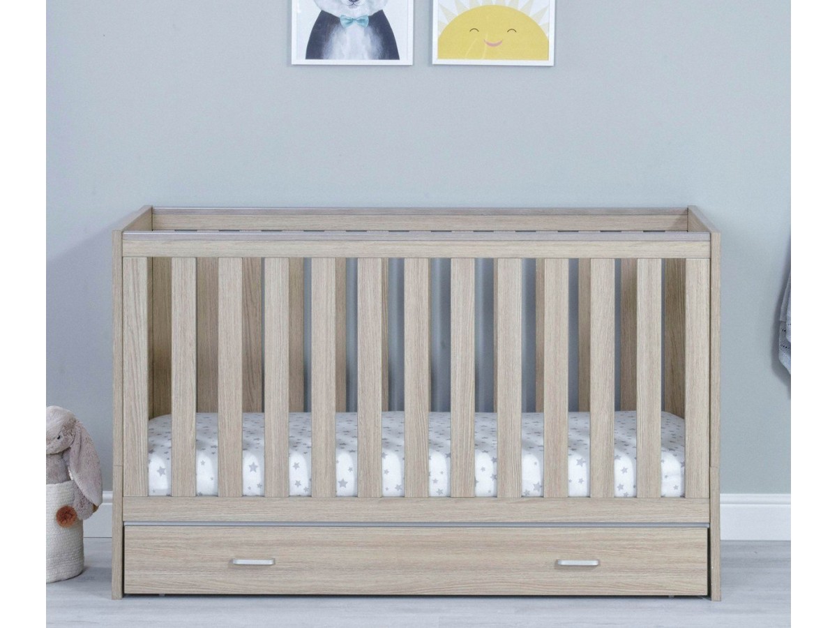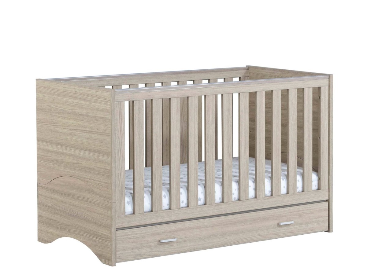 The Babymore Veni Cot Bed to Toddler Bed with Drawer gives you all the benefits of the Veni Cot Bed but with additional and very useful storage space! This Cot Bed has a very sleek appearance. It’s simple design makes it a chic addition to any Nursery. With its warm oak wood finish, the Veni Cot Bed is at home in either a modern or more traditional setting.