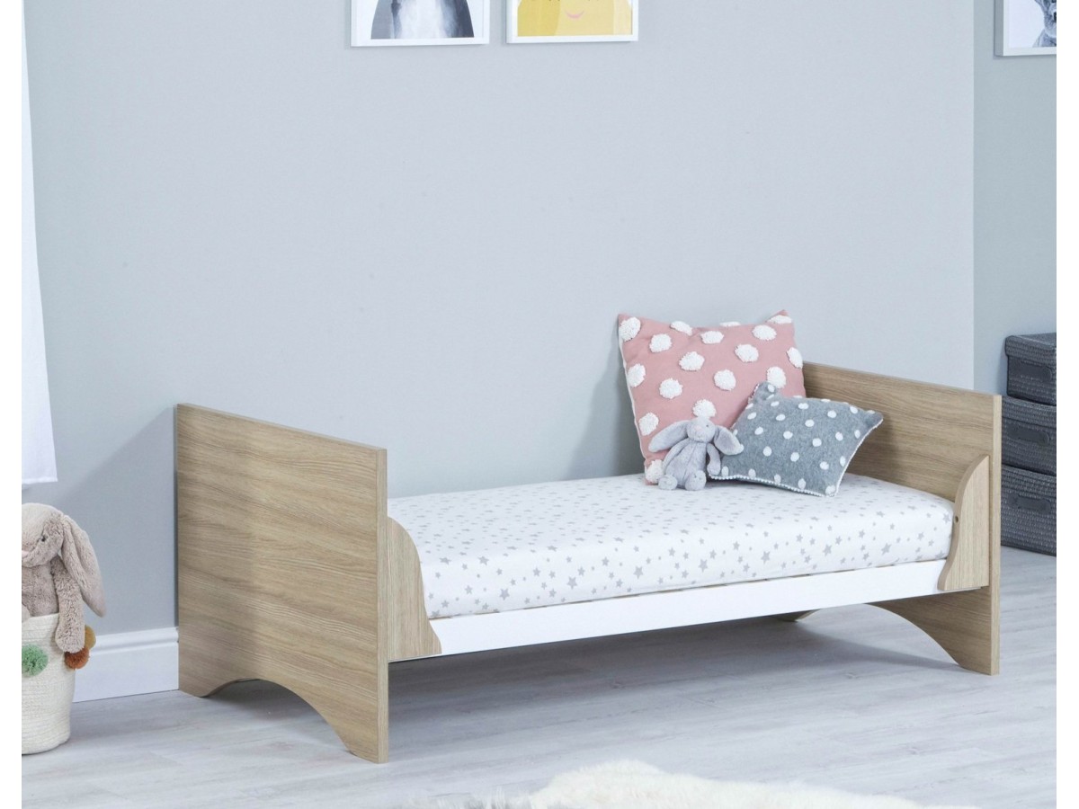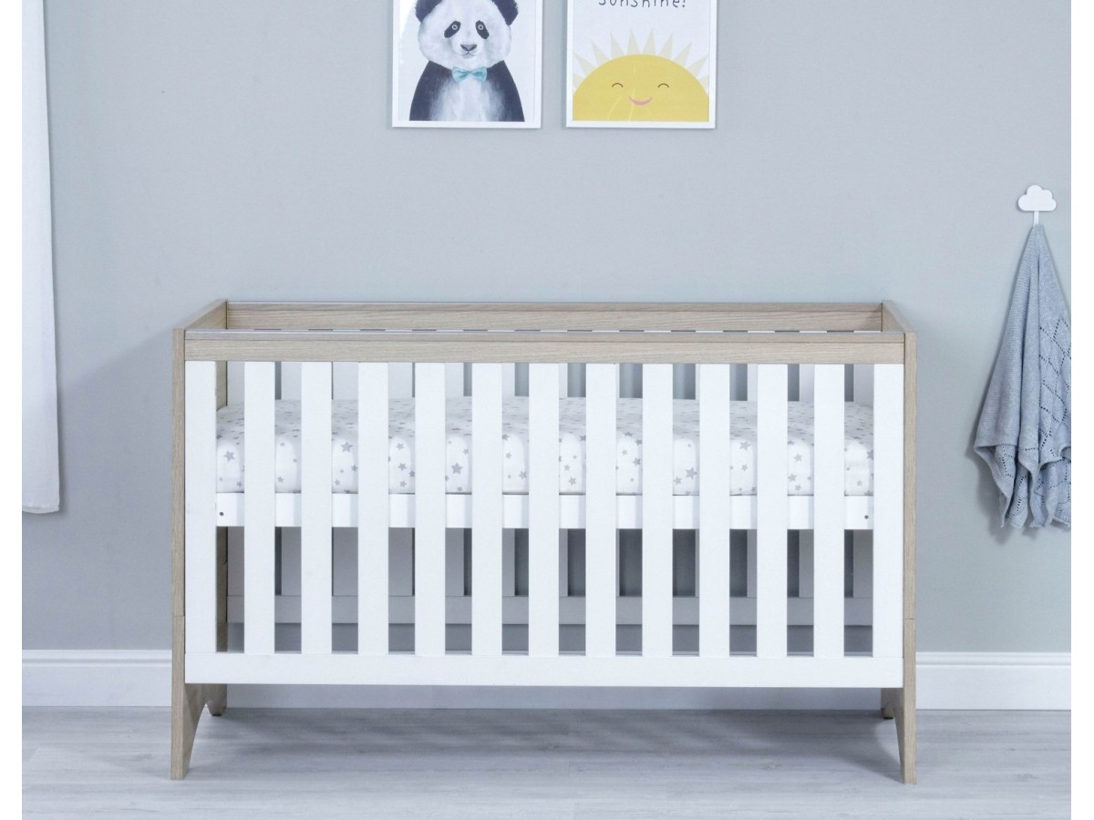 The Babymore Veni Cot Bed has a very sleek appearance. Its simple design makes it a chic addition to any Nursery. With its warm oak and white wood finish, the Veni Cot Bed is at home in either a modern or classic setting.
