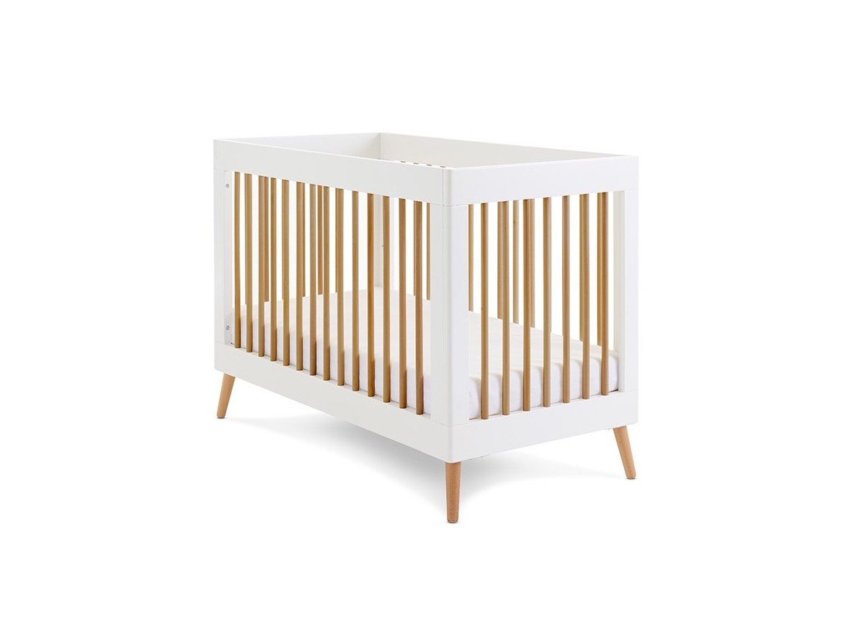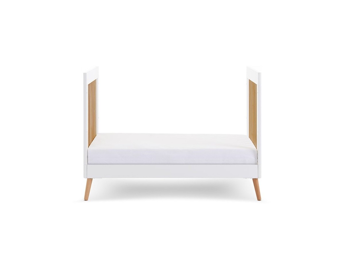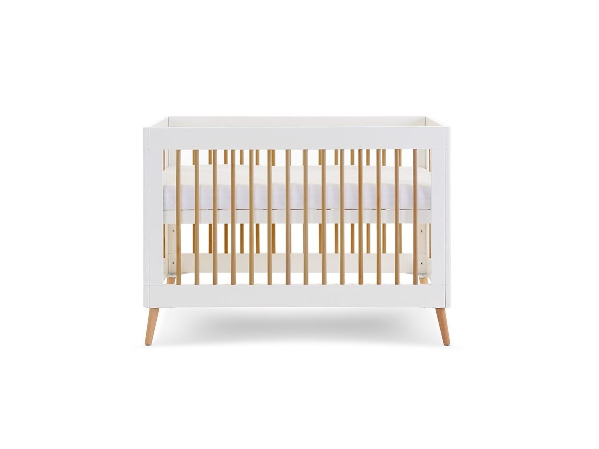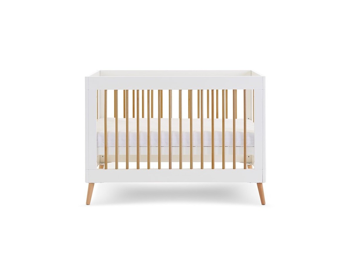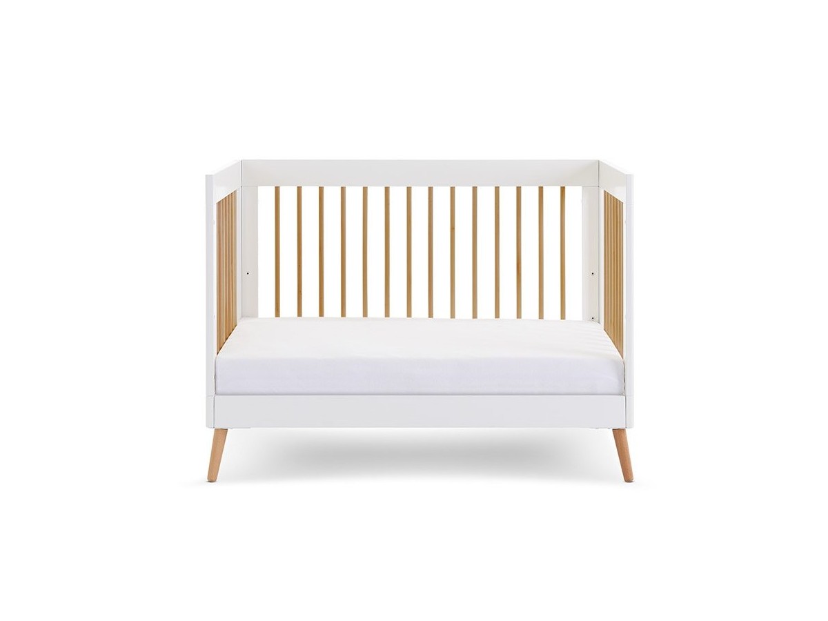 Featuring the same aesthetic and high-quality finish of the regular sized cot bed, the Maya Mini cot bed means families with a more compact nursery do not have to compromise when looking for a space-saving alternative. The top position of the three height-adjustable mattress base allows you to put down your baby with less pressure and strain applied to your back and as they develop and find their feet, you can maintain their safety by lowering the base. When your little one is ready to begin their transition, the included safety rail will provide reassurance and familiarity during an often daunting time and once they are used to their “big bed” this can be simply removed to create a stylish toddler bed.