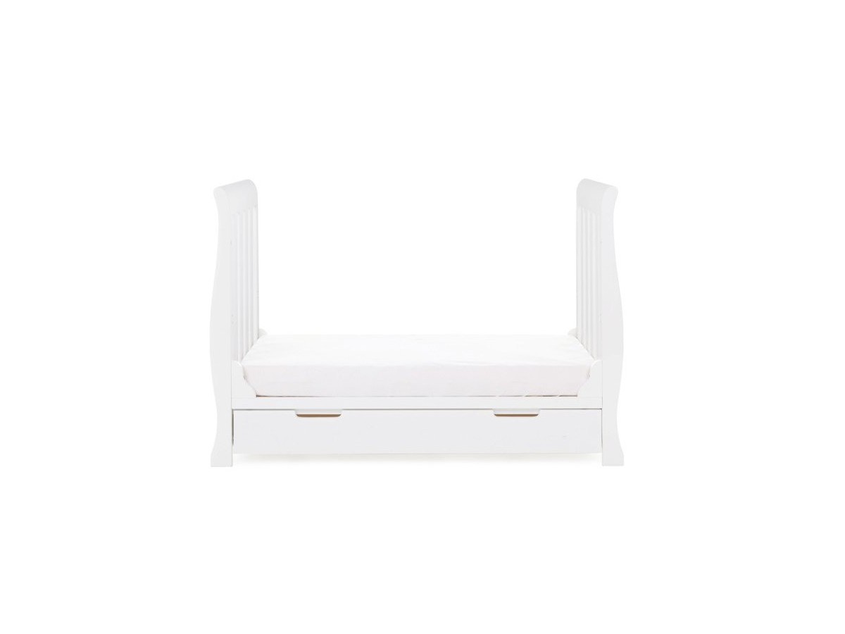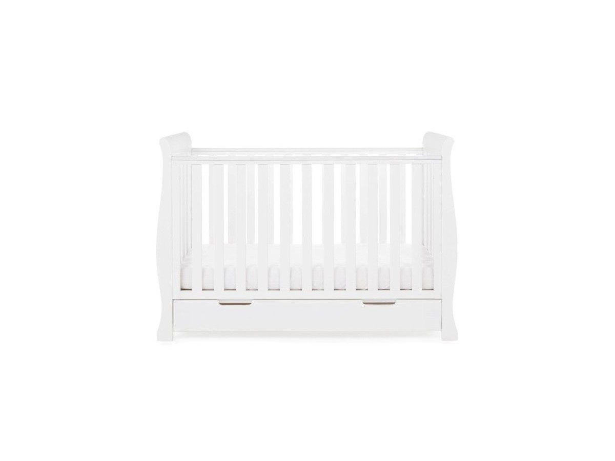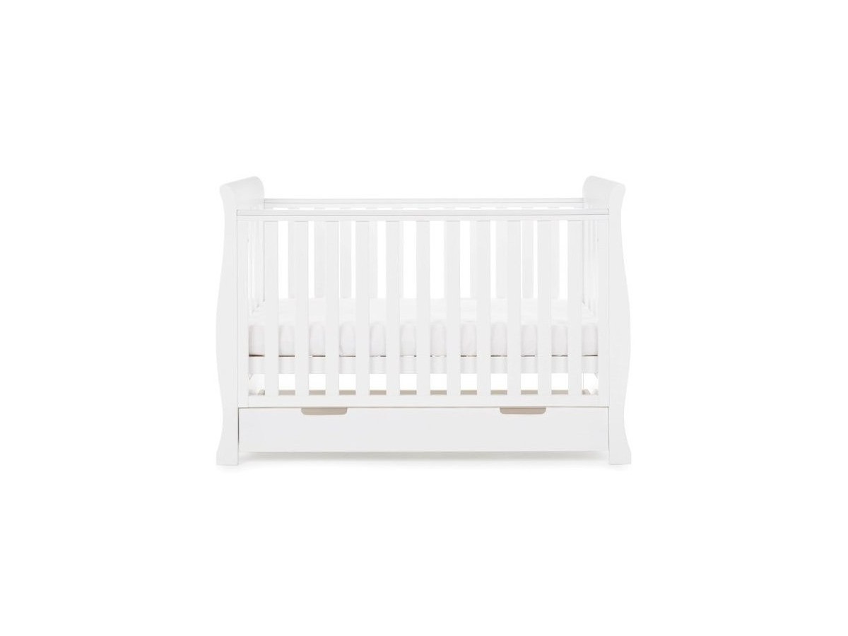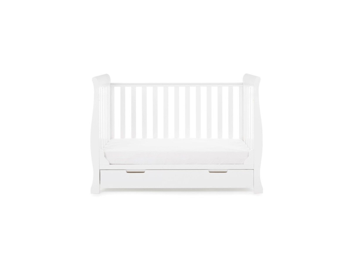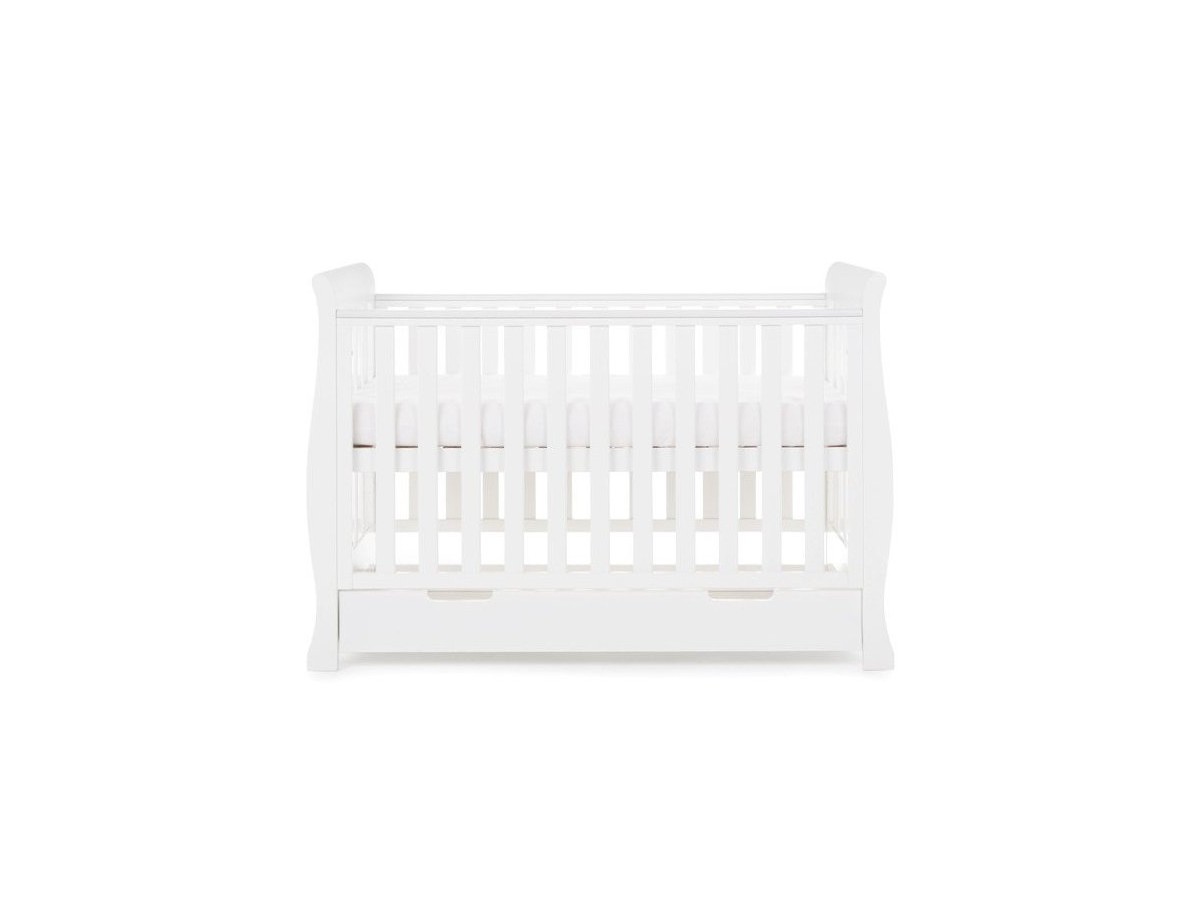 The Obaby Stamford furniture range offers families the perfect combination of style, quality and practicality. The Stamford Mini sleigh cot bed is the perfect addition to any nursery, its elegant sleigh design offers traditional styling while its slatted ends add a contemporary touch.