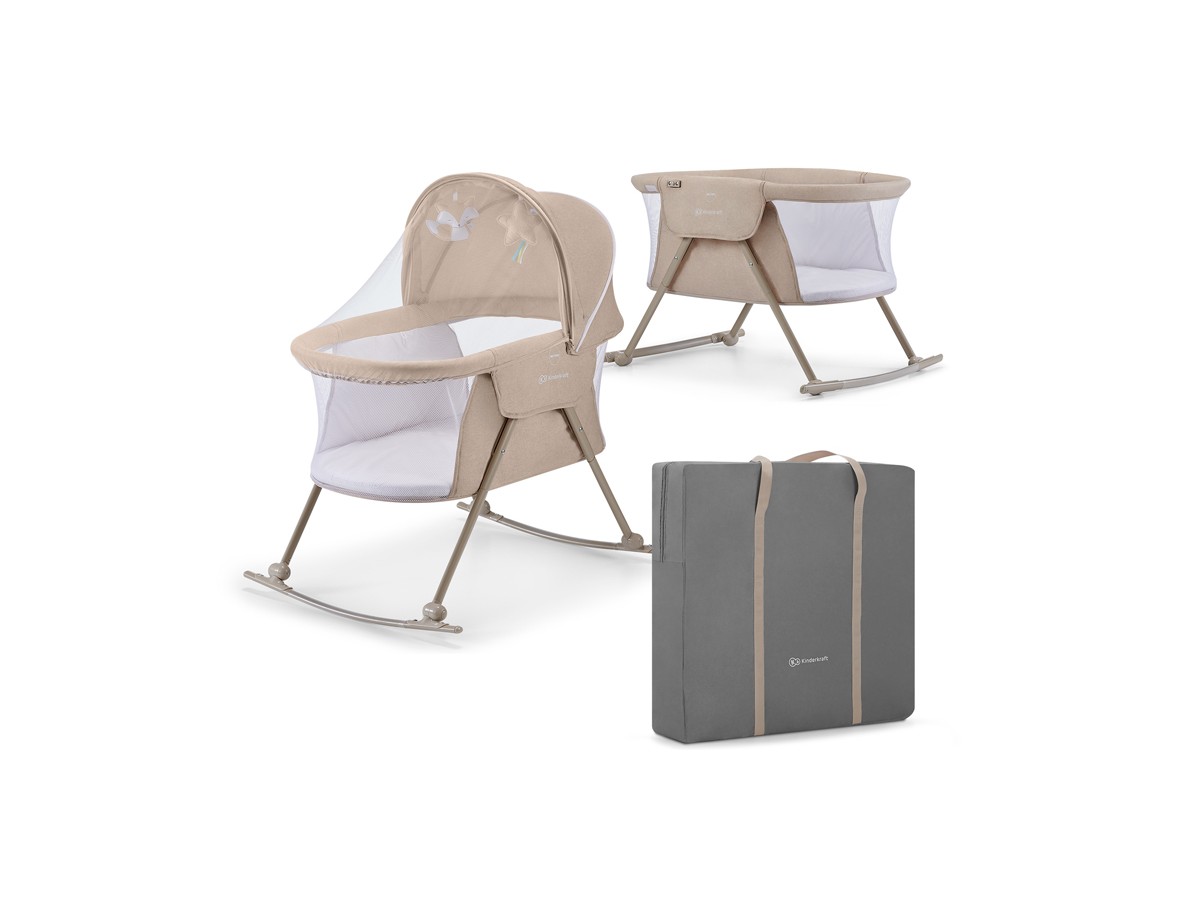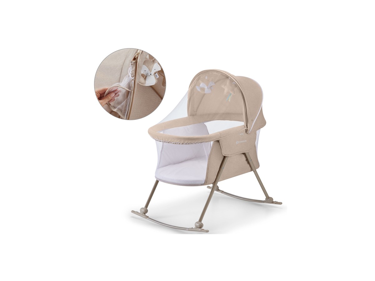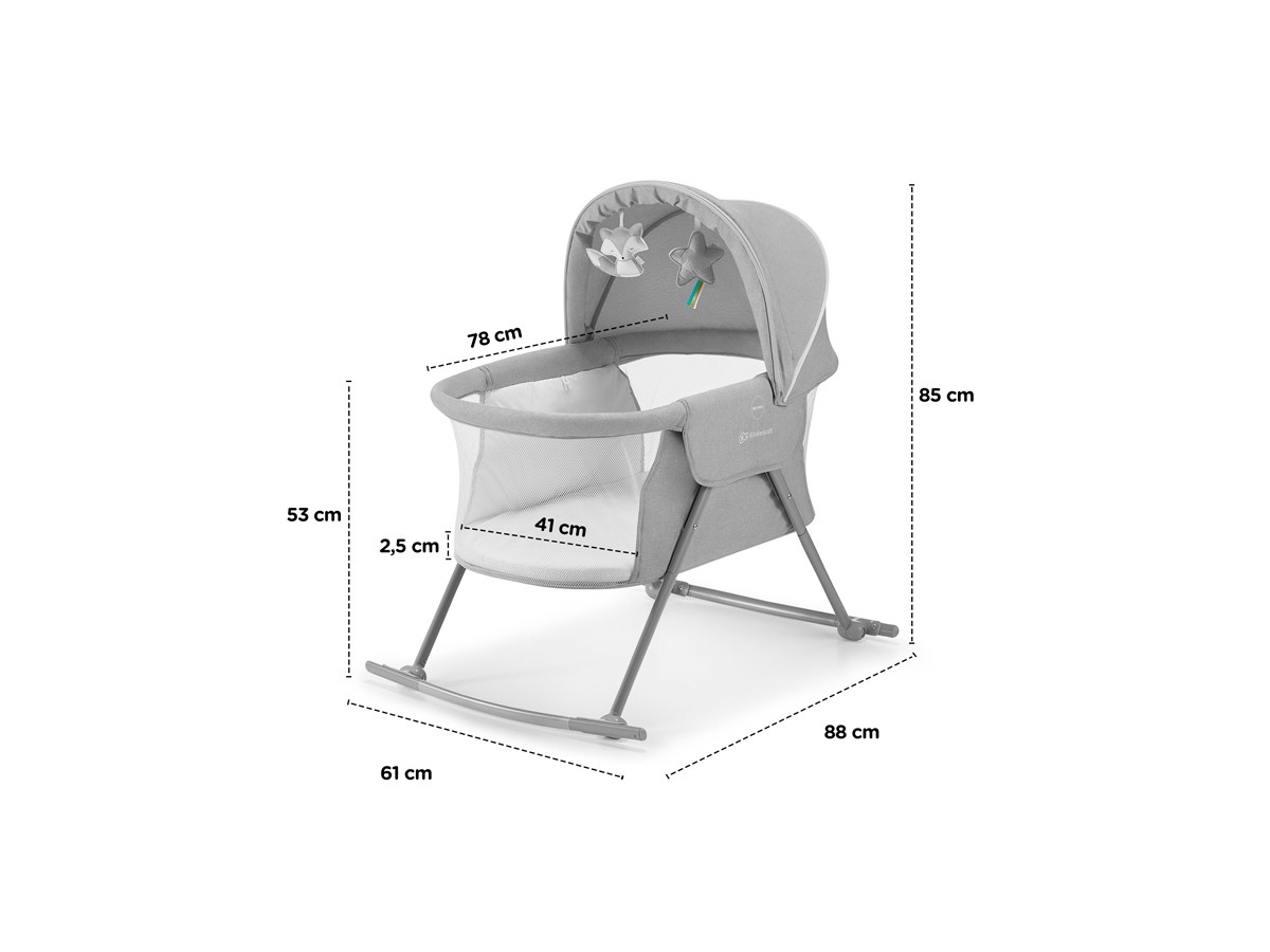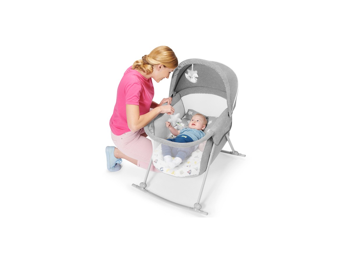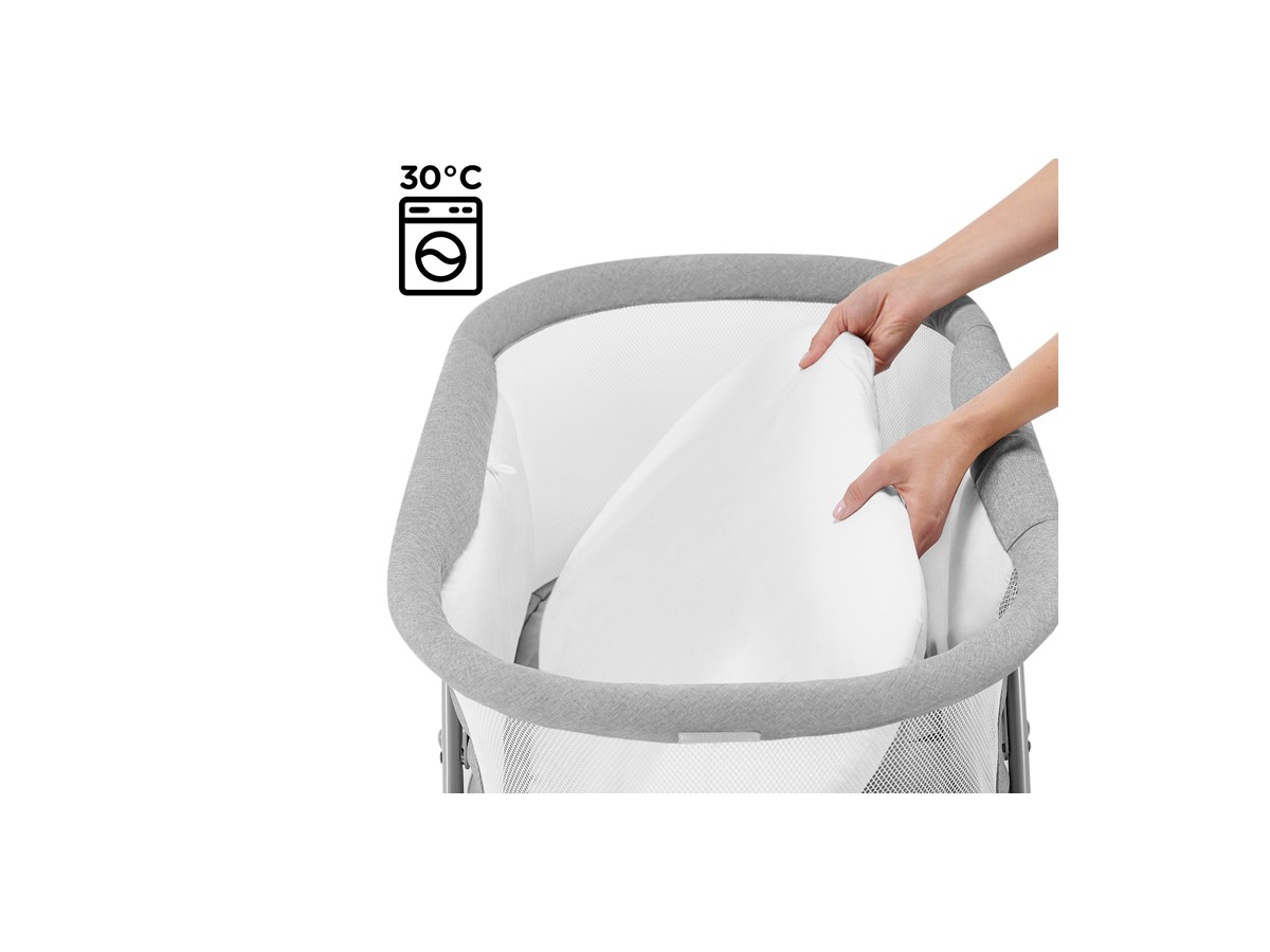 The LOVI 3-in-1 cot is extremely functional. It can be used as a cradle, travel cot or cot for the home. The adjustable hood with a built-in mosquito net will help your child sleep peacefully and safely in all conditions. LOVI is equipped with a set of toys that attach using Velcro and will help keep your child entertained. It's lightweight, which means you can easily carry it, and the practical bag helps with storage and transport.