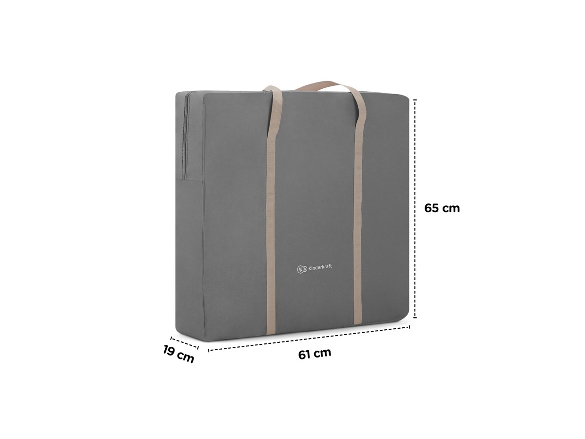 - Easy storage – the cot folds in just a few seconds. After folding, it's lightweight and compact. The travel bag included in the set means that the cot will be an indispensable companion for you and your child on your trips.