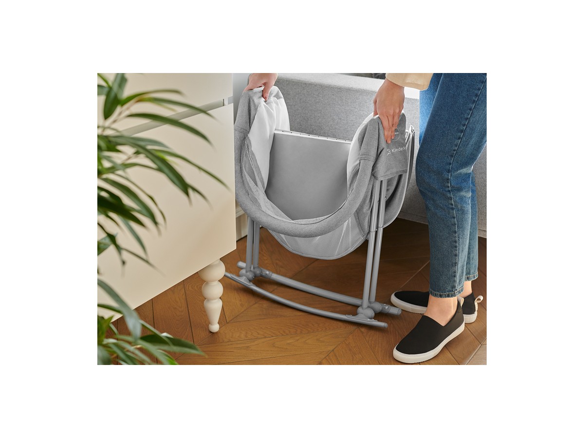 - Possibility of setting the rocking frame in a stable and rocking position – the cot will never start rocking on its own.