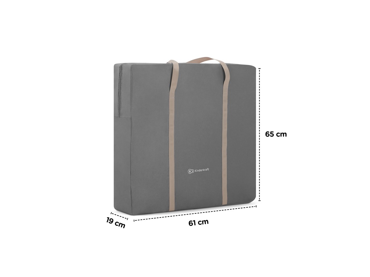 - Easy storage – the cot folds in just a few seconds. After folding, it's lightweight and compact. The travel bag included in the set means that the cot will be an indispensable companion for you and your child on your trips.