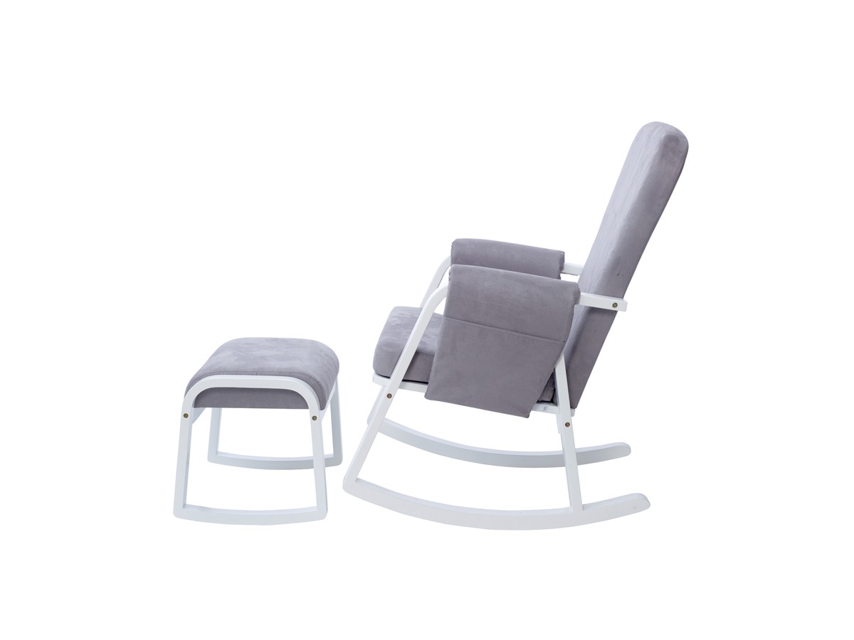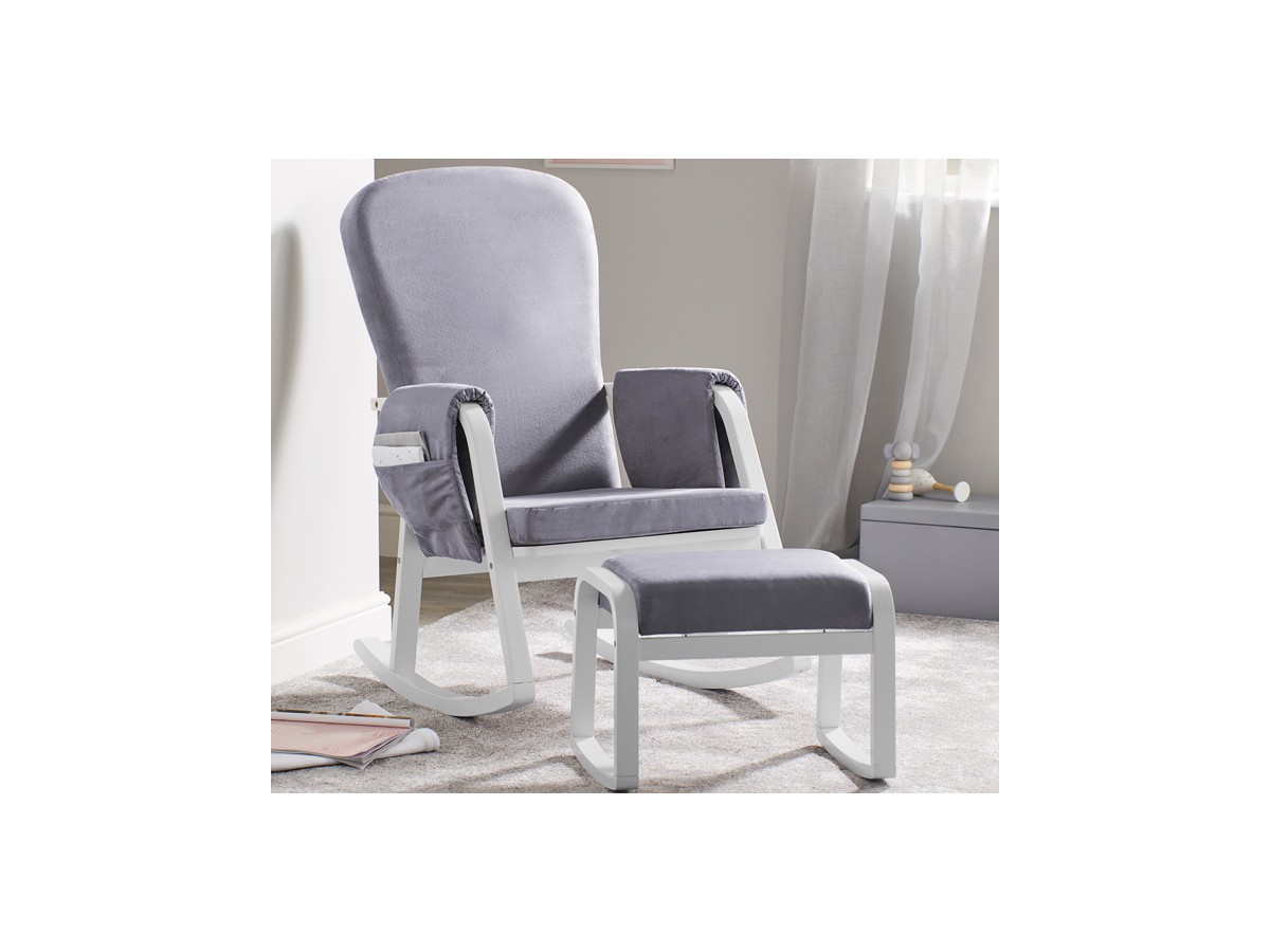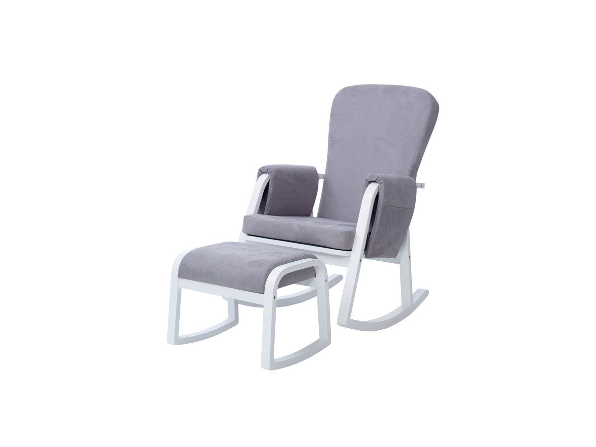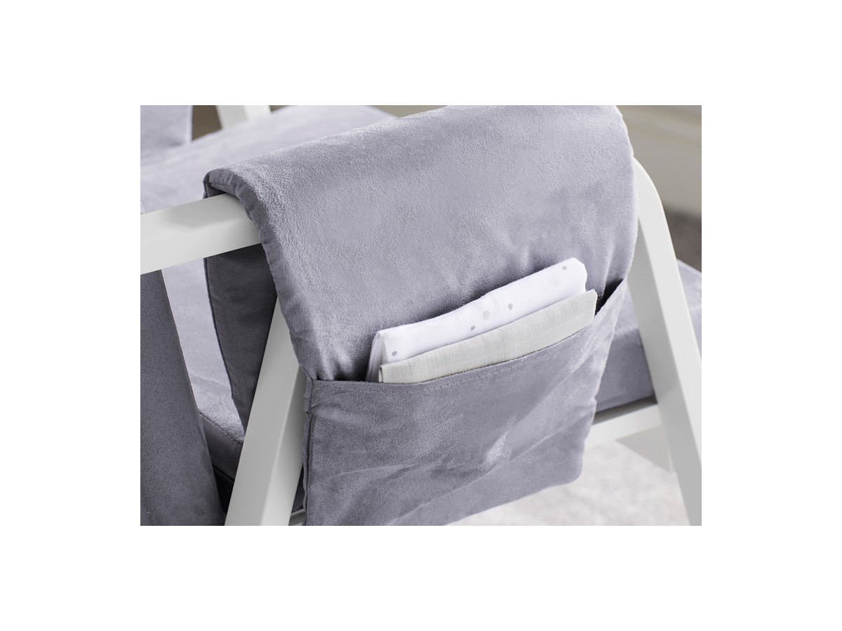 The Dursley Rocking Chair & Stool adds a modern twist to the traditional rocking chair design, with a special emphasis on comfort. The sturdy solid wood construction is enveloped in a softly-cushioned suedette material; ideal for the lengthy feeding sprees! Keep all of your essentials in the handy armrest pockets, whilst you sit back with your bubba and enjoy the smooth rocking motion that will soon have them nodding off.