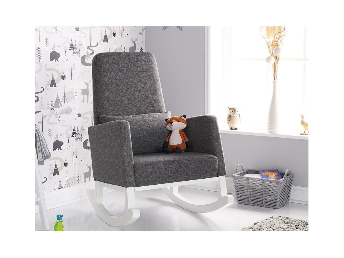 Obaby High Back Rocking Chair - White with Grey Cushions