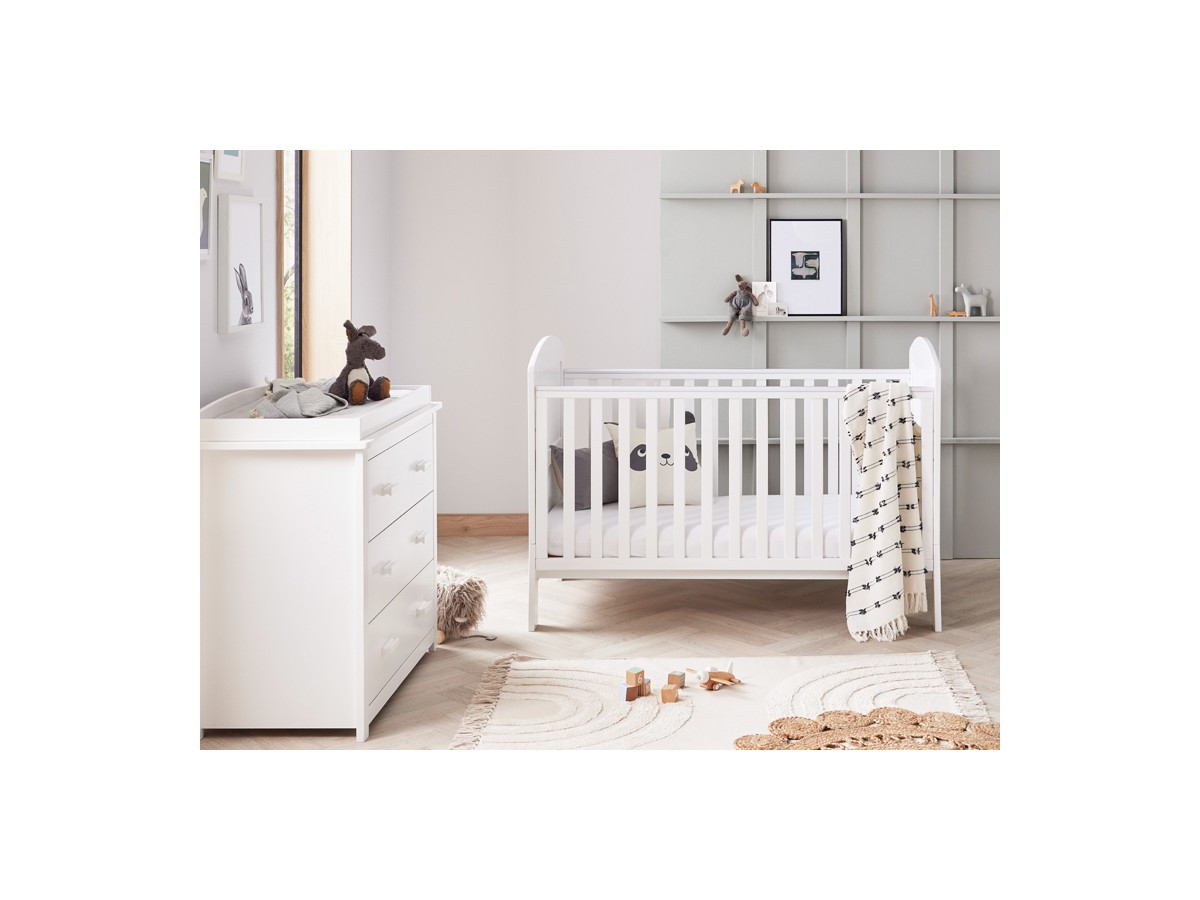 A large dresser/changer with three deep drawers and a practical changing area is also included in the set. All of your baby's essentials can be stored in this piece of furniture, which makes it simple to keep everything organised and accessible.