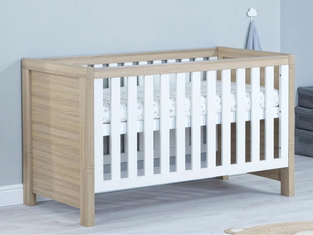 The Luno range offers a modern, warm, and clean design, with its neat lines and a beautifully textured Warm Oak wood effect finish. It will sit stylishly in your baby’s nursery. This 3-piece room set consists of Luno cot bed, changing unit and double wardrobe. There is also the option of a coordinated cot bed under drawer, and cot top changer.