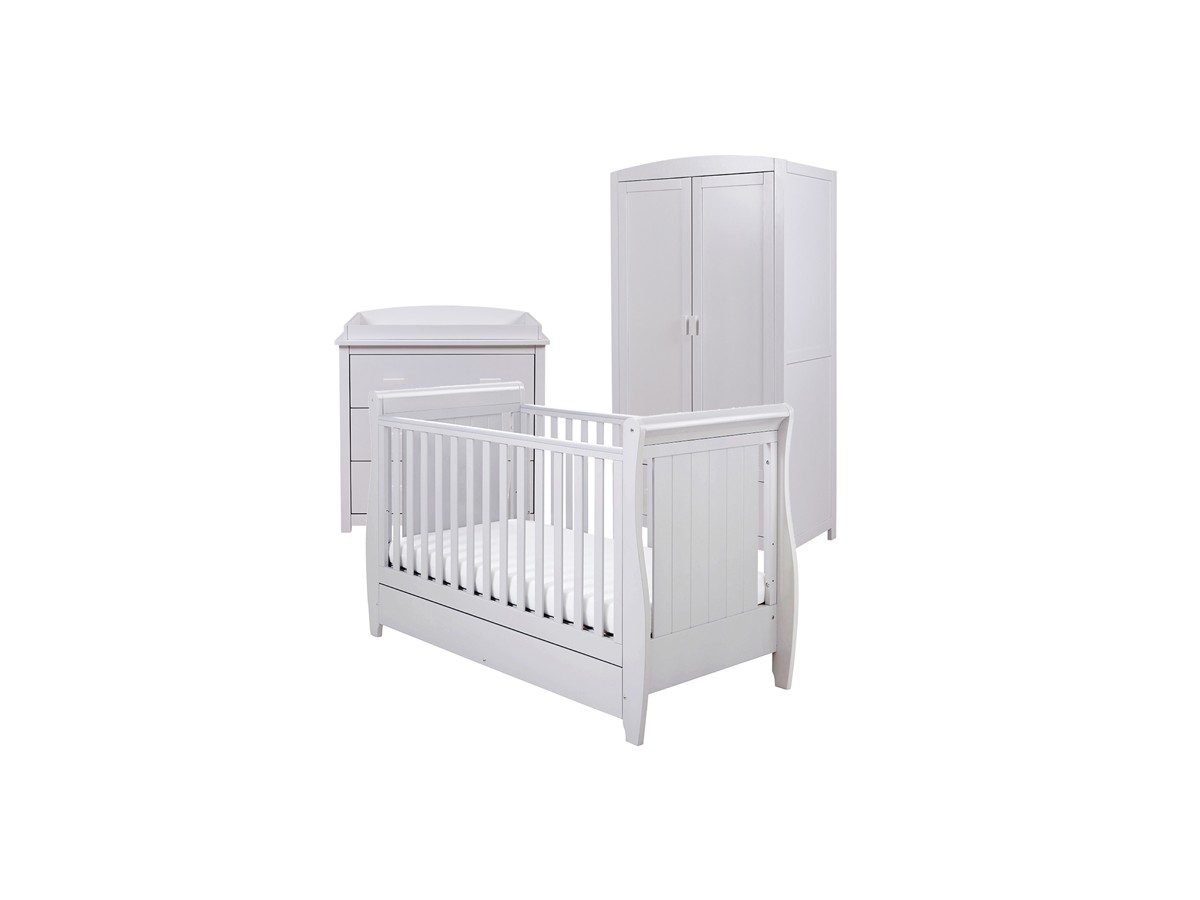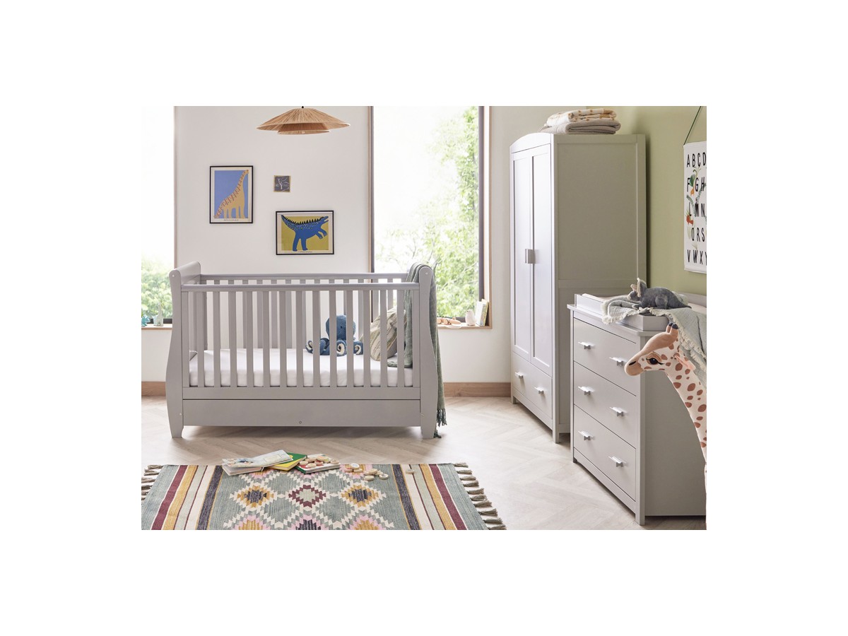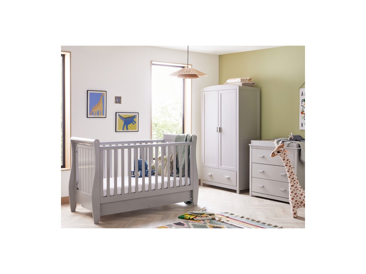 For parents who want a chic nursery that will last for years to come, our three-piece Stella room set with sleigh cot bed is the ideal option. This set is sure to become a treasured addition to your family's life thanks to its timeless style and flexible functionality.
