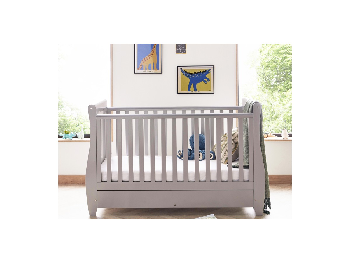 The sleigh cot bed is a timeless and elegant piece of furniture that will grow with your child. Made from sturdy wood and finished in a classic hue, it features a sleigh design with curved edges and slatted sides. The cot bed has a 3-position adjustable base, allowing you to lower it as your baby grows. The cot bed also comes with teething rails to protect your baby's gums and teeth, and a handy storage drawer underneath to keep all your baby essentials close at hand. It can be converted into a toddler bed when your child is ready to make the transition from a cot.