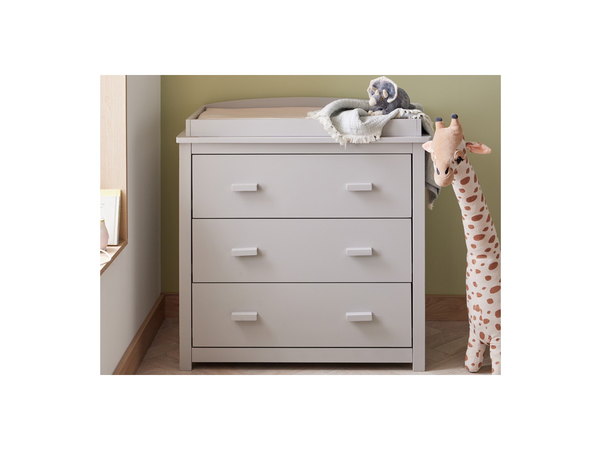 The chest changer is a practical and functional addition to your nursery. Also made from durable wood and finished in grey, it features three deep drawers with ample storage space for your baby's clothes, nappies, and other essentials. The top of the chest doubles as a changing table with a raised edge to keep your baby safe and secure during nappy changes. The chest changer also features an anti-tip safety mechanism for added peace of mind.
