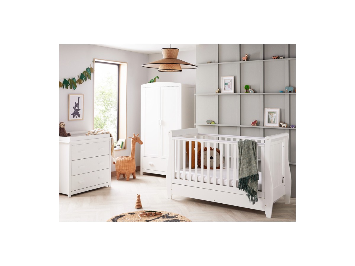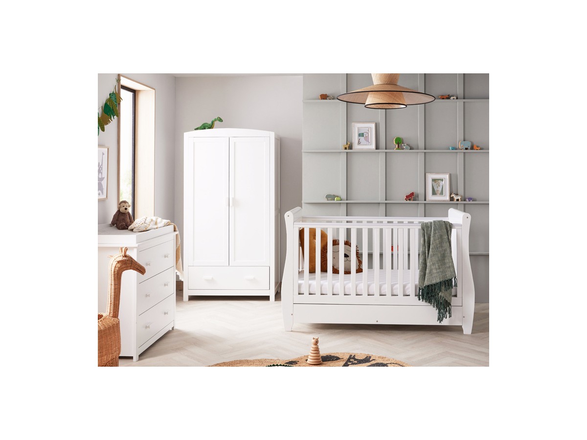 For parents who want a chic nursery that will last for years to come, our three-piece Stella room set with sleigh cot bed is the ideal option. This set is sure to become a treasured addition to your family's life thanks to its timeless style and flexible functionality.