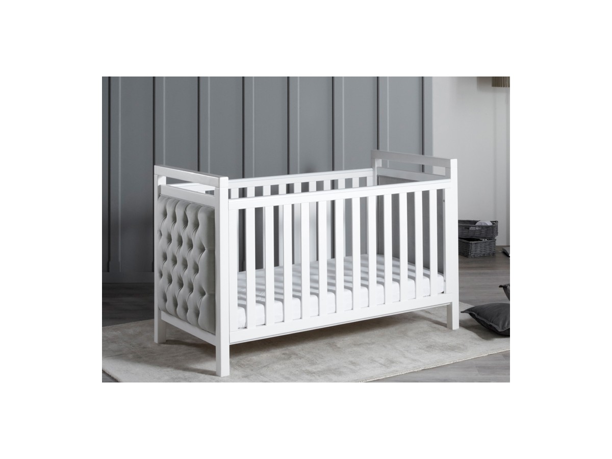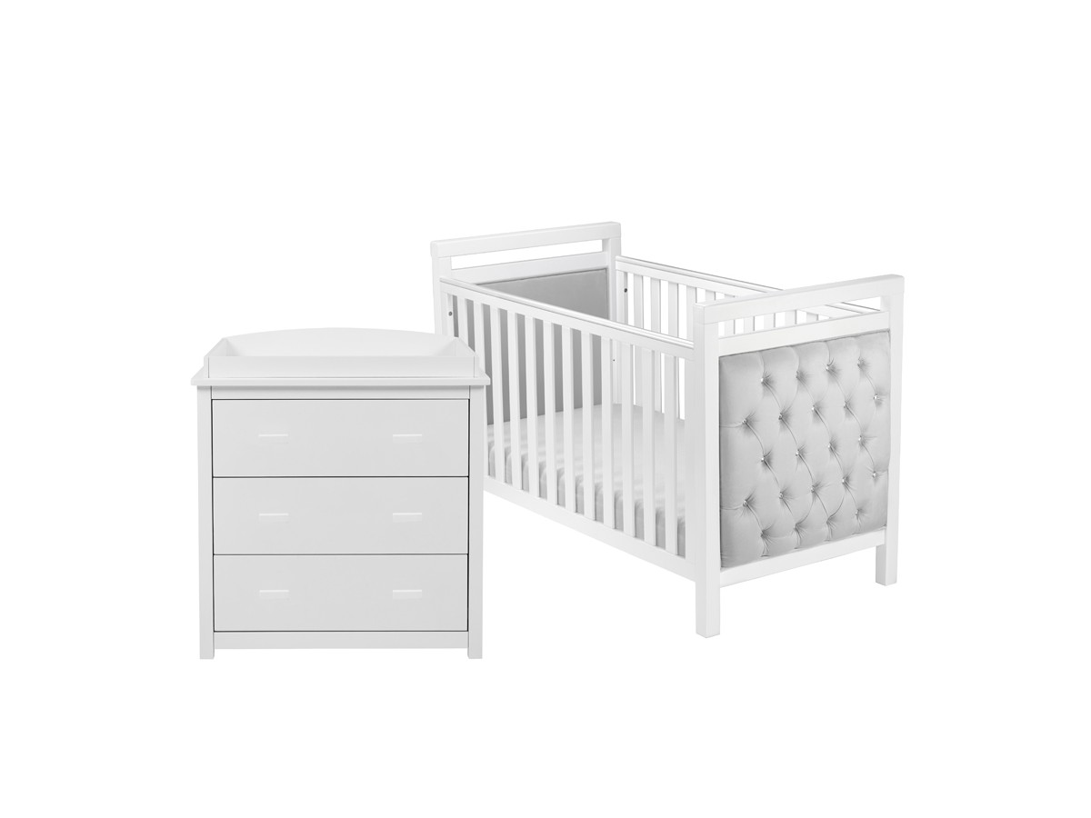 Crafted from the highest quality materials, our furniture set is designed to last for years to come. The centrepiece of the set is our luxurious velvet cot bed with diamante button detailing. The cot bed is expertly upholstered in velvet fabric, giving it a look and feel that is truly one-of-a-kind. There are 3 mattress positions which get lower as your baby gets older and more mobile. Once they outgrow the cot, it can easily be transformed into a stylish toddler bed.