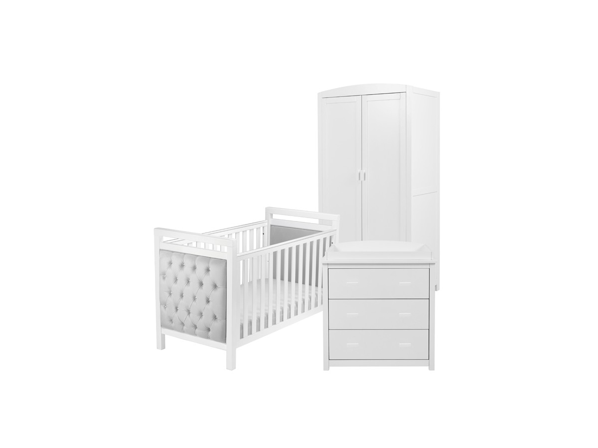 Crafted with care and attention to detail, our furniture set includes a plush and comfortable velvet cot bed, a versatile chest changer, and a spacious wardrobe. Each piece is expertly crafted, ensuring that they will stand the test of time and provide your baby with a comfortable and stylish space to grow and thrive.