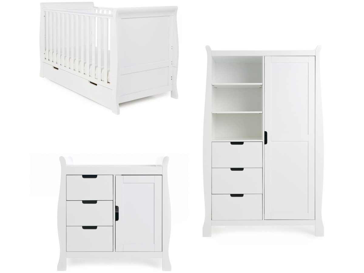 Obaby Stamford Classic Sleigh 3 Piece Room Set - White