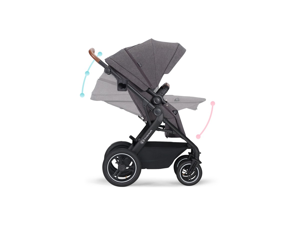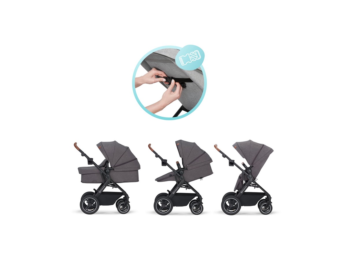 - The stroller's backrest can be set in three different positions: sitting, reclining and lie-flat. You can adjust it using one hand – in just a few seconds, you can prepare a comfortable place for your child to nap.