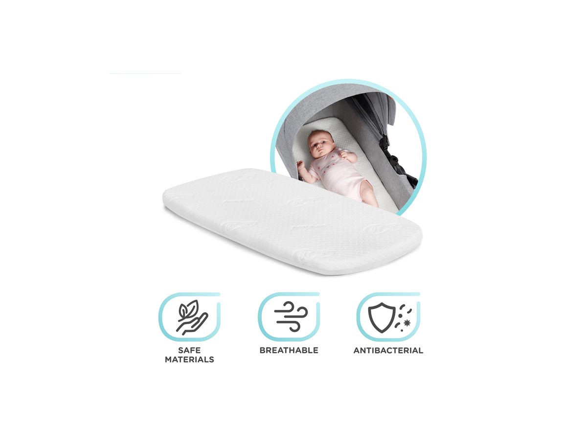 - The carrycot comes with a mattress whose cover is enriched with bamboo fibres, which provide adequate air flow and are better at wicking away moisture. The cover has antibacterial and thermoregulating properties (28% bamboo fibres, 72% polyester, antibacterial cover).