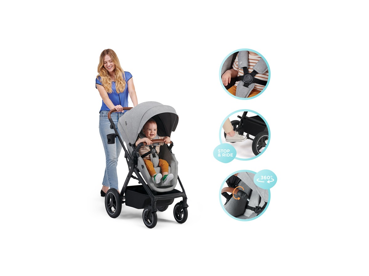- The stroller seat features an adjustable five-point safety harness with soft pads. You can easily remove and clean it, and thanks to the adjustment options, you can tailor it to your rapidly growing littlie.