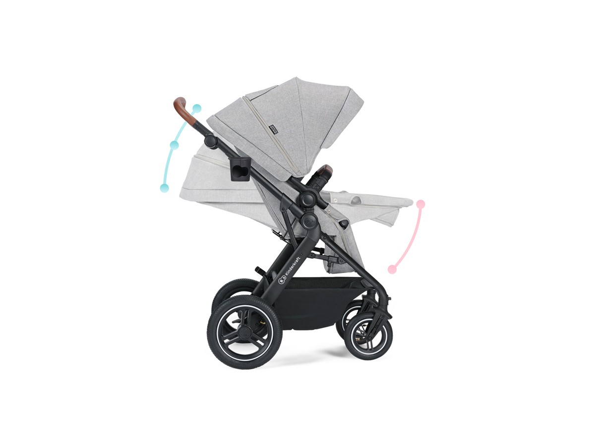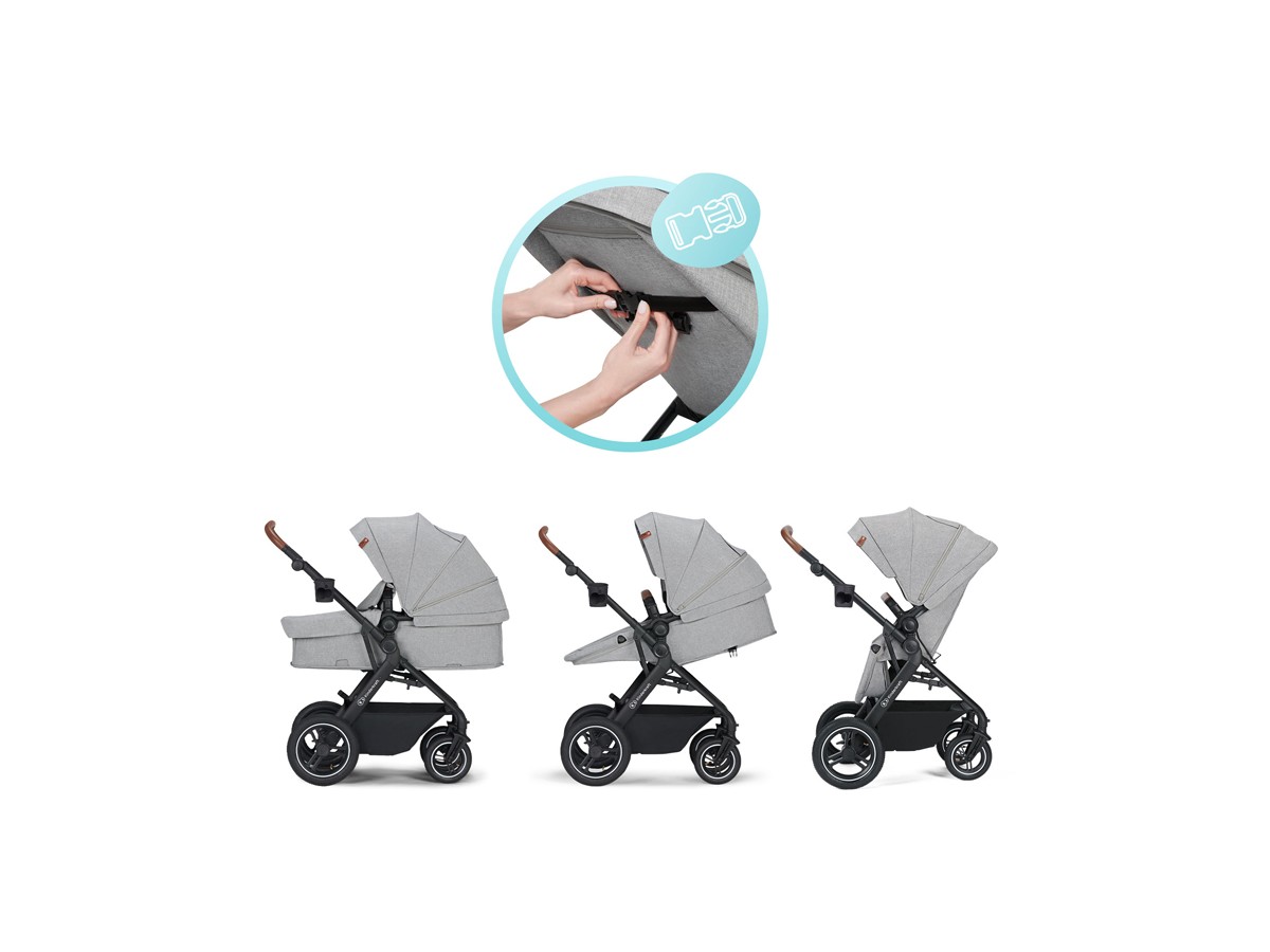 - The stroller's backrest can be set in three different positions: sitting, reclining and lie-flat. You can adjust it using one hand – in just a few seconds, you can prepare a comfortable place for your child to nap.
