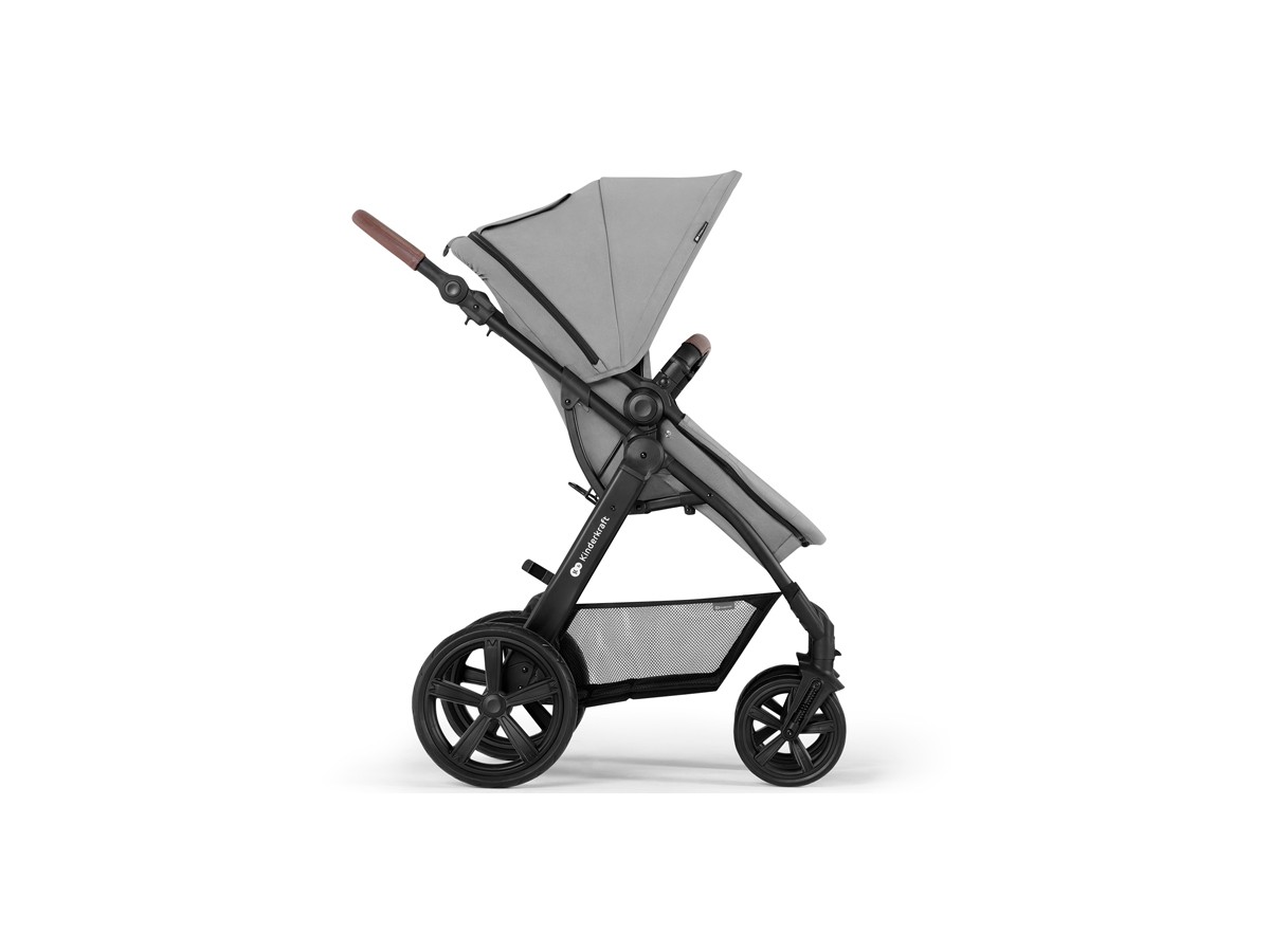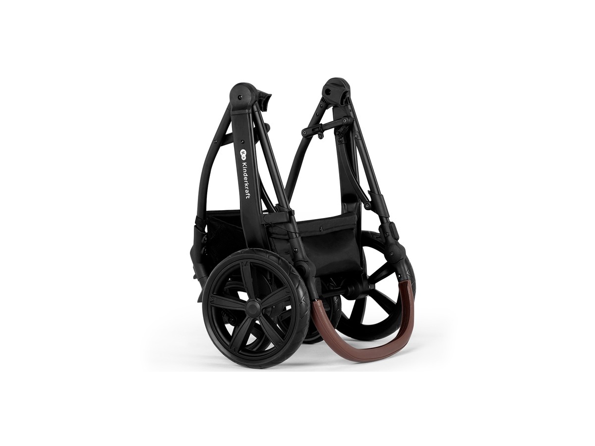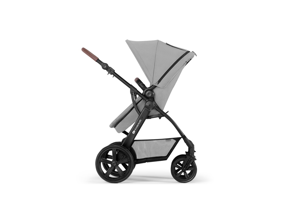 The pushchair is equipped with large wheels with shock absorbers that don’t need to be pumped up. They’re ideal for both the city and on beaten forest trails. They’re resistant to puncture and abrasion, making them perfect for not only city pavements, but also gravel roads.