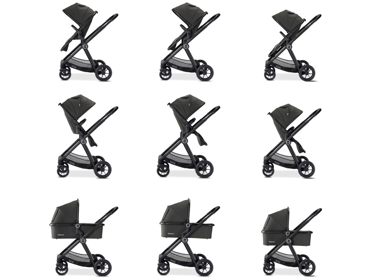 Our 13-piece luxury travel system bundle includes: chassis, seat, elevators, carrycot, car seat adaptors, footmuff, seat liner, rain cover, changing bag, changing mat, cup holder, Pecan i-Size car seat and ISOFIX base.