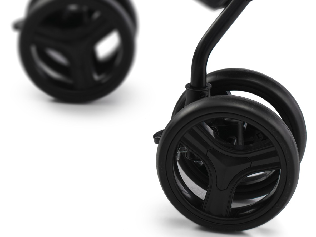 The stroller's wheels are lightweight and puncture-resistant - you don't need to inflate them. They will perform great during a city break, a holiday resort stay or a walk through urban streets. You can lock the front wheels to ride on uneven surfaces.